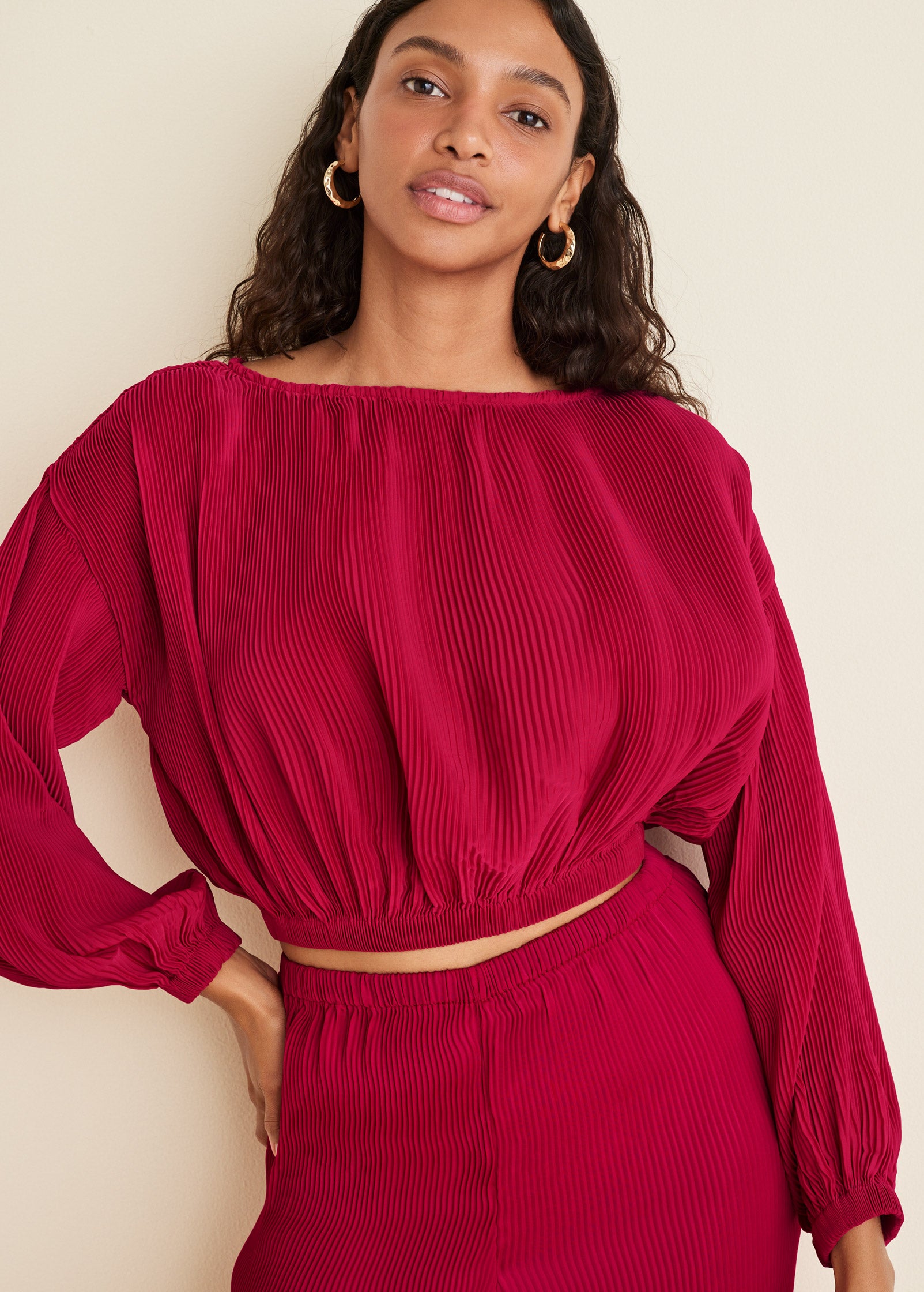 Plisse Billow Top - Red