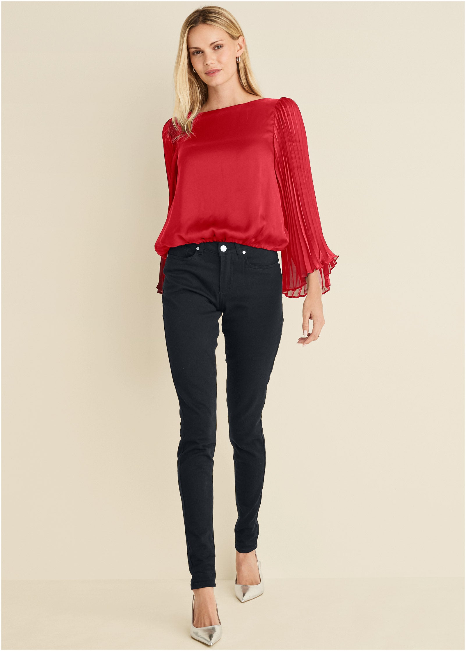 Pleated Sleeve Top - Red
