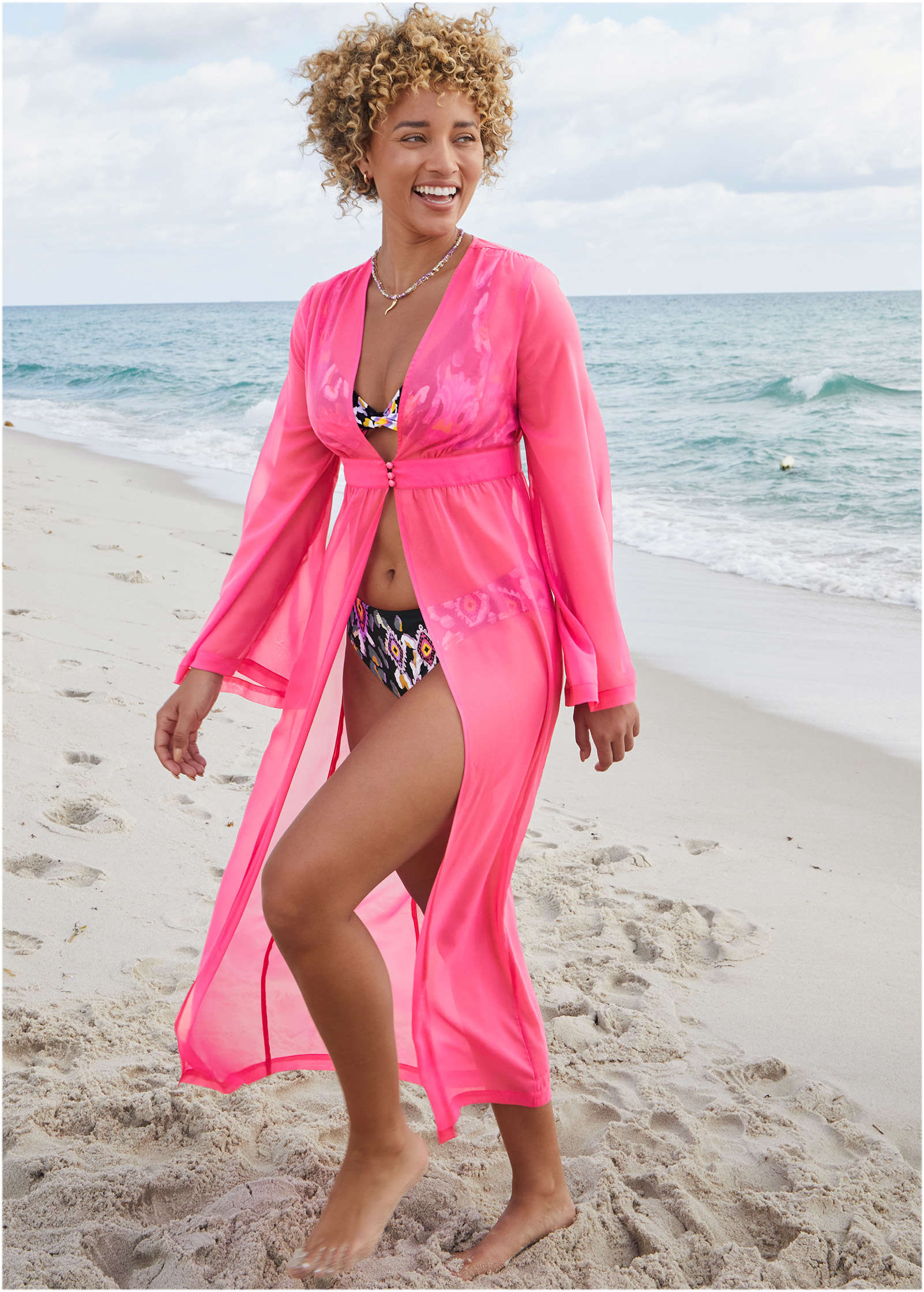 Sea Breeze Kimono Cover-Up - Fuchsia