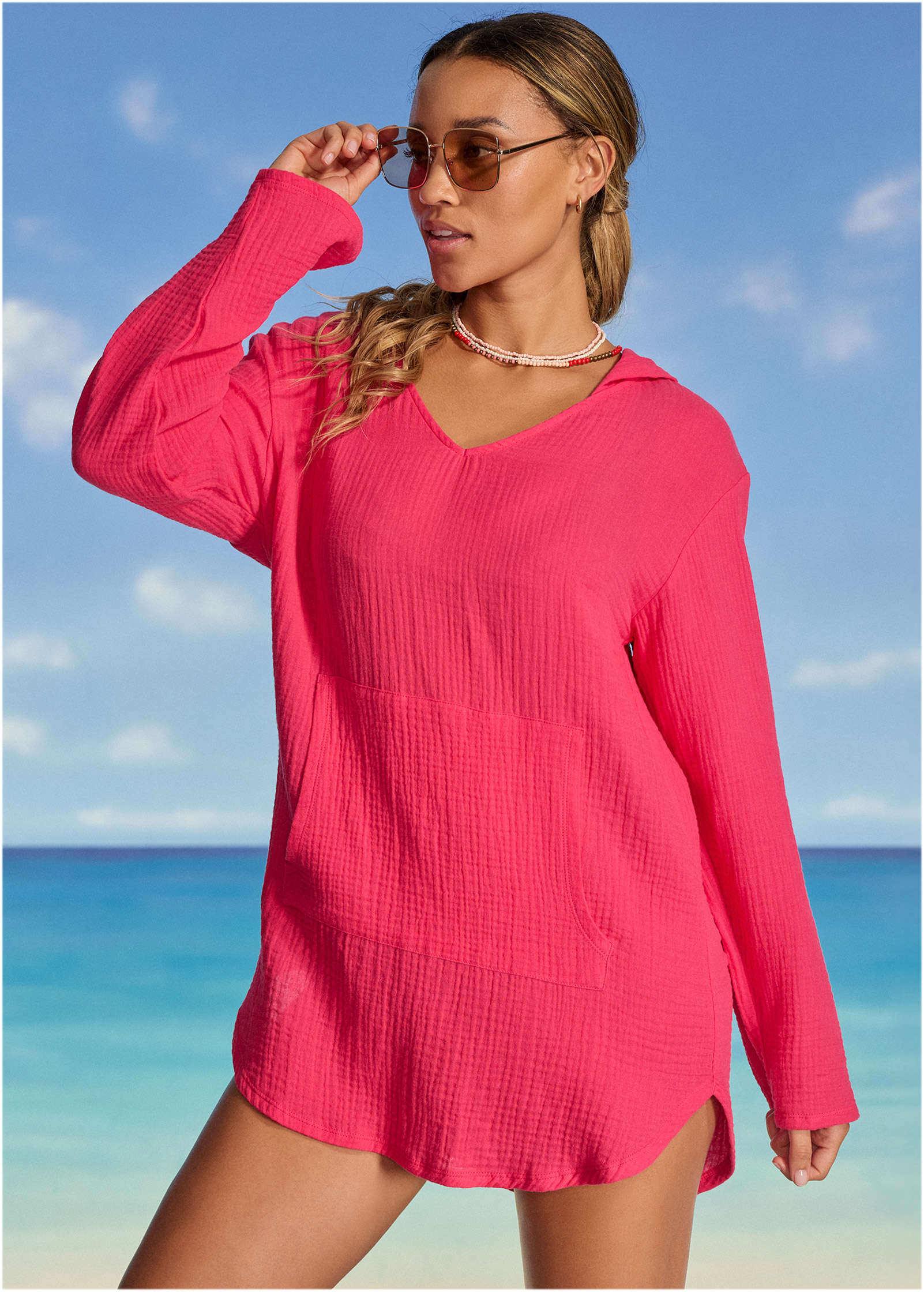 Short Sleeve Cover-Up - Sunset Pink