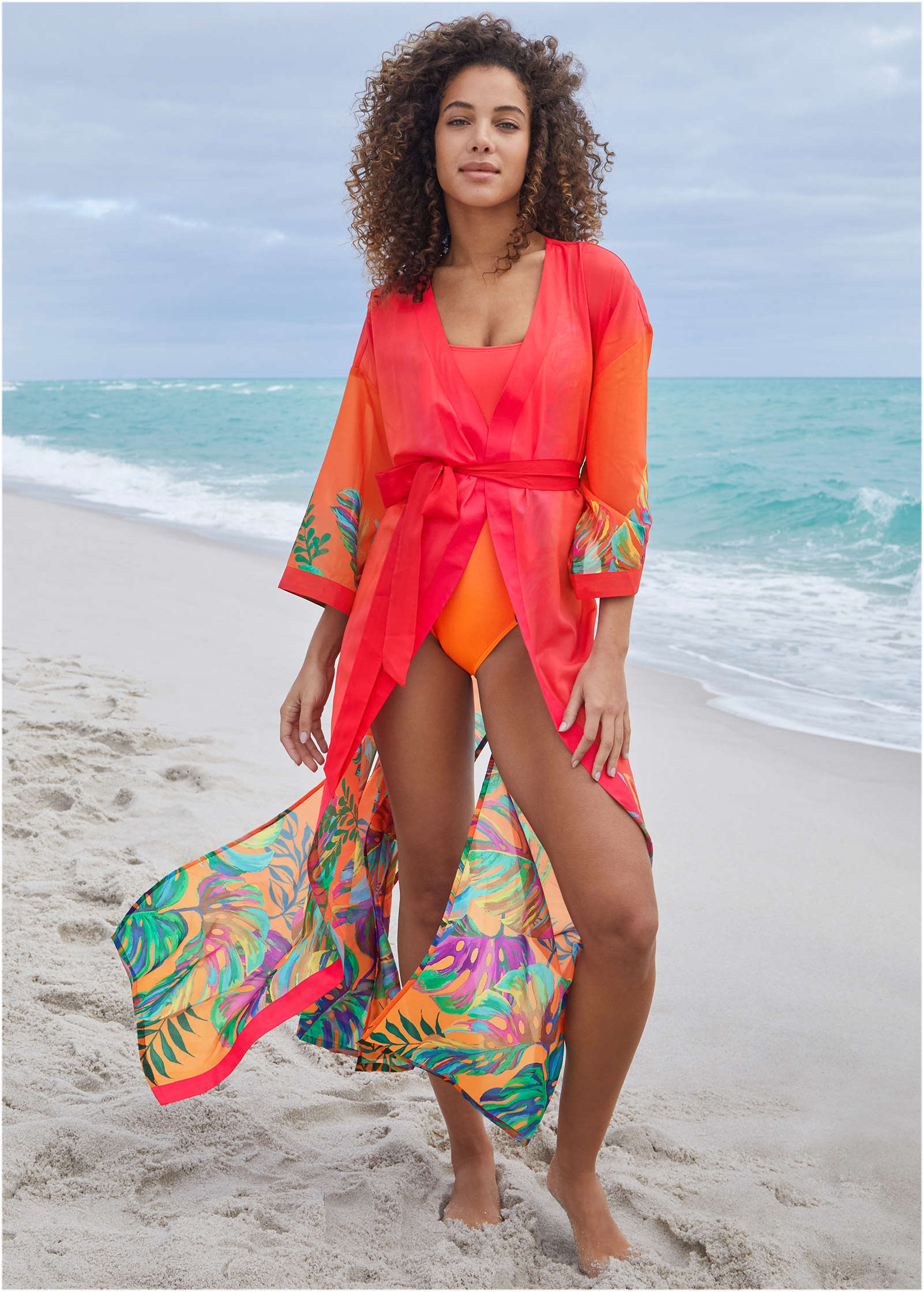 Belted Kimono Cover-Up - Tropical Sunset Border
