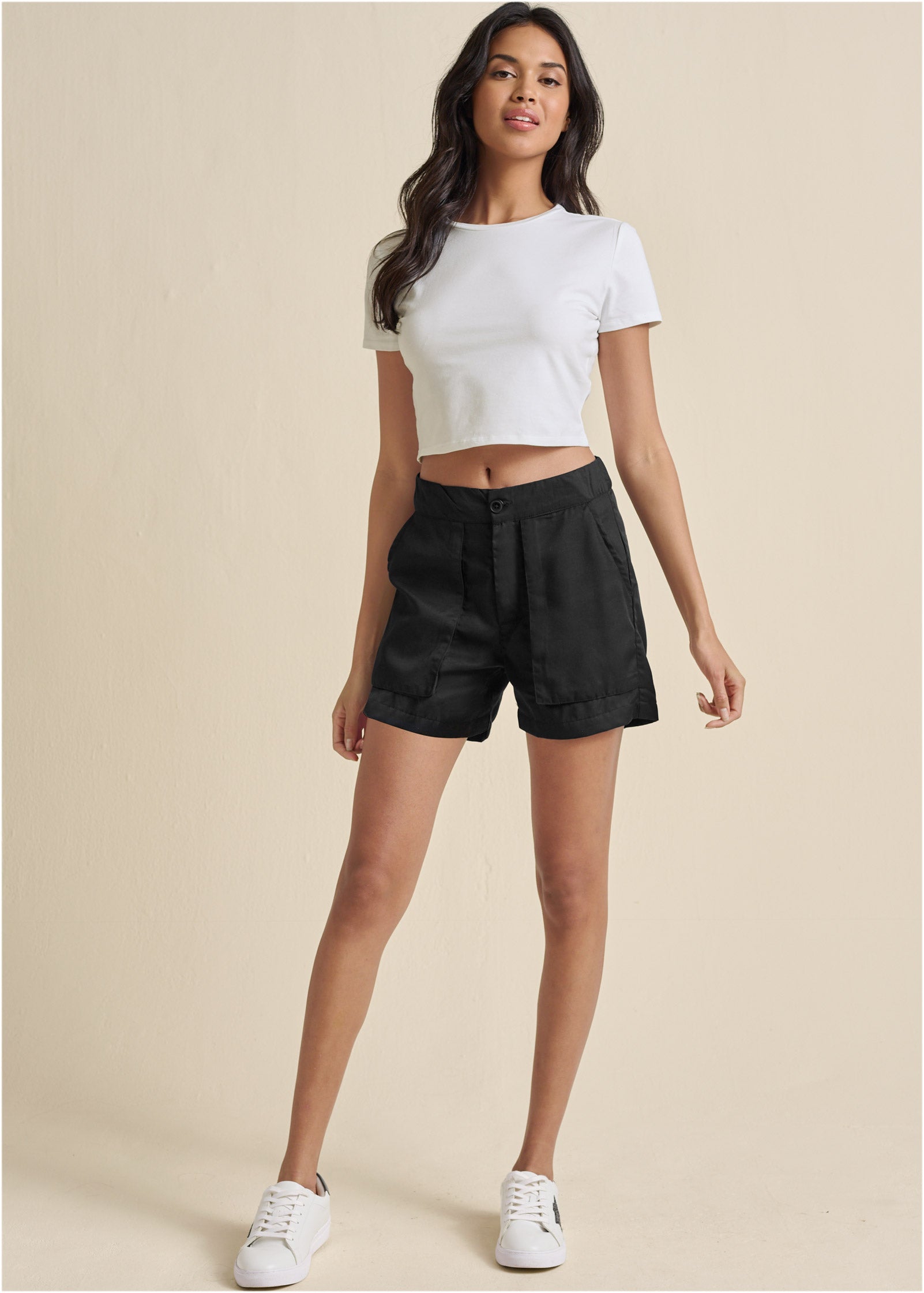 High-Waist Walking Shorts - Black