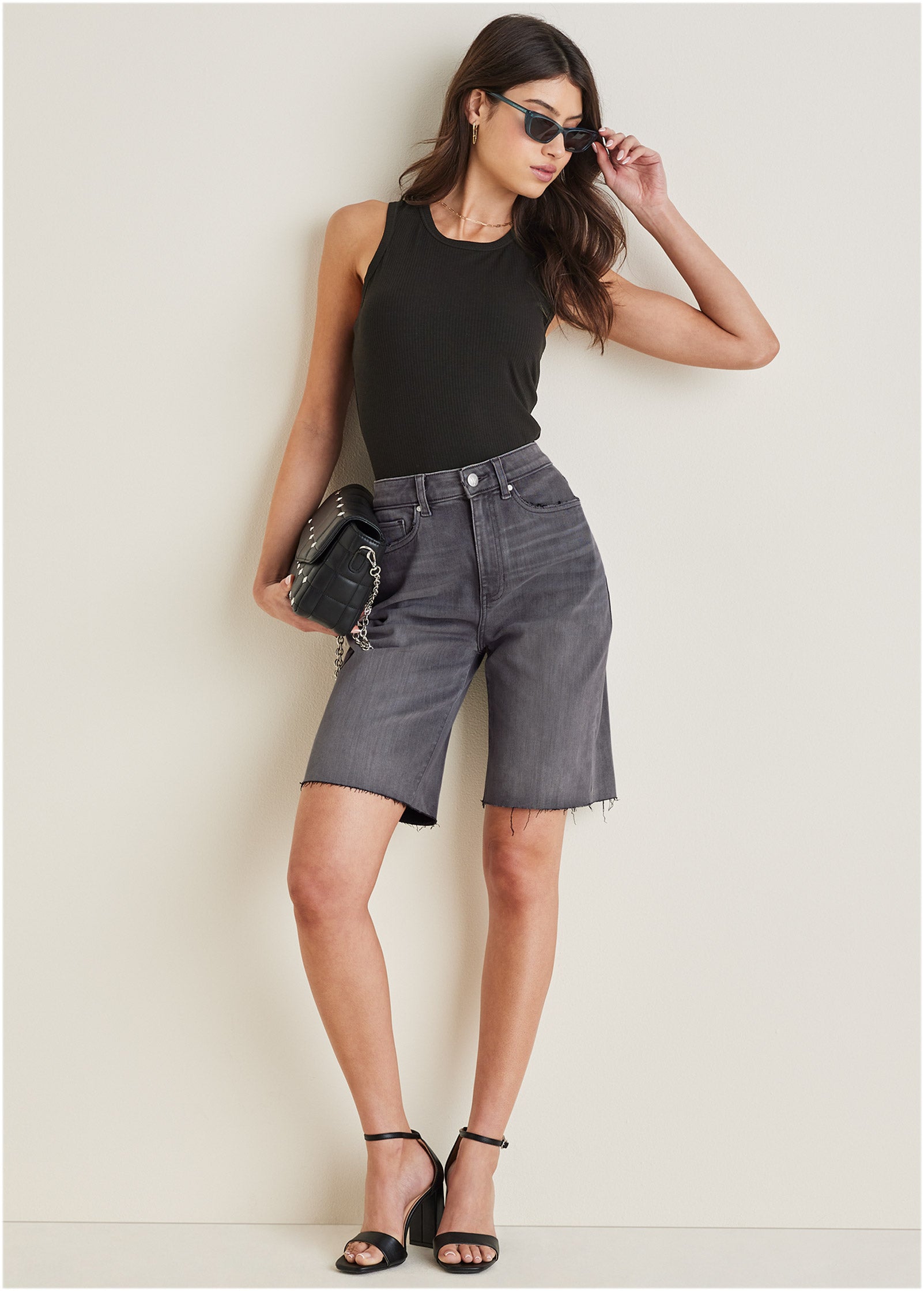 Long Jean Shorts - Black