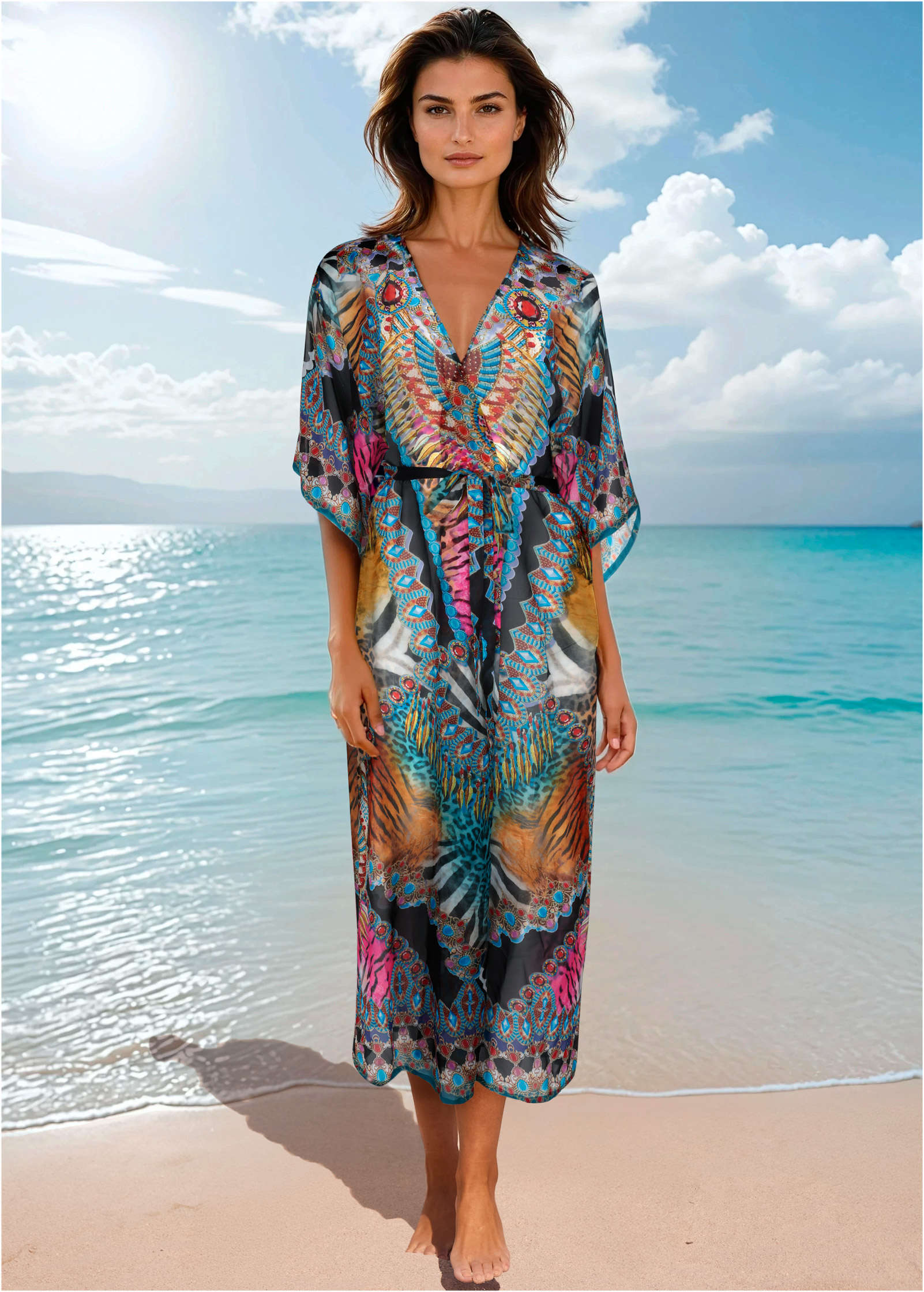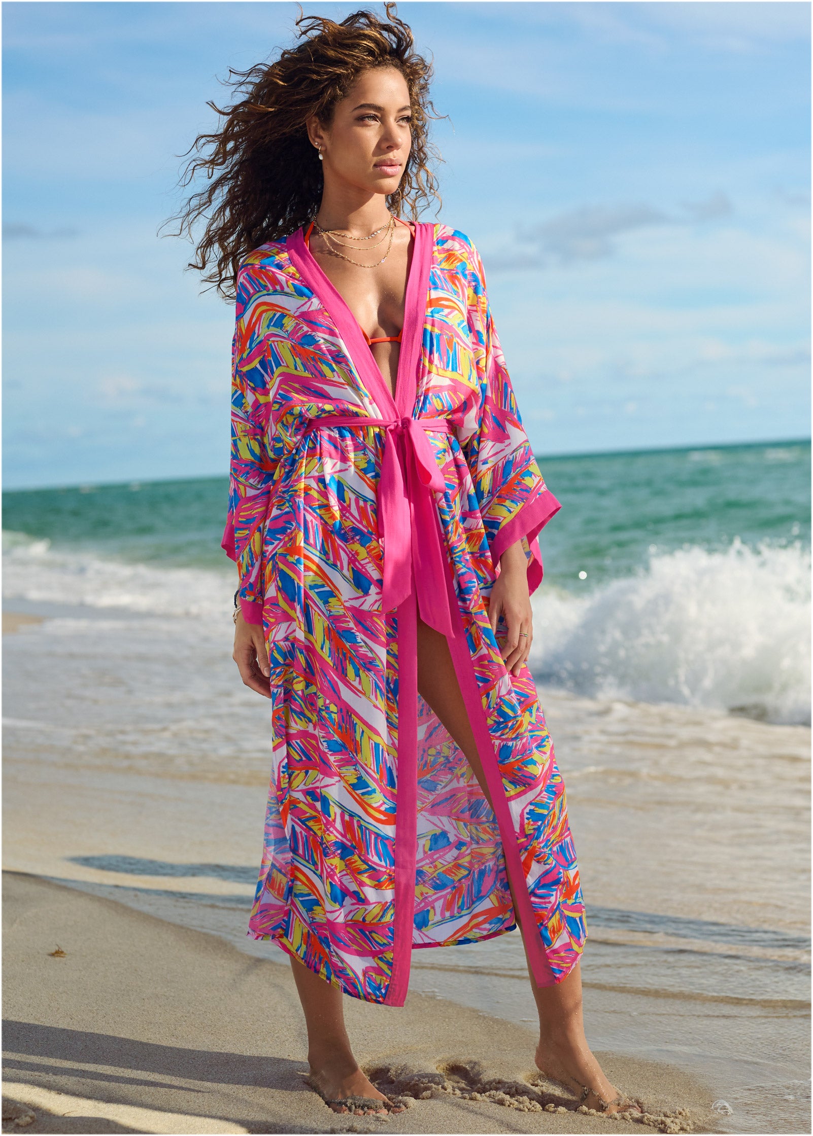 Midi Kimono Cover-Up - Bright Palm