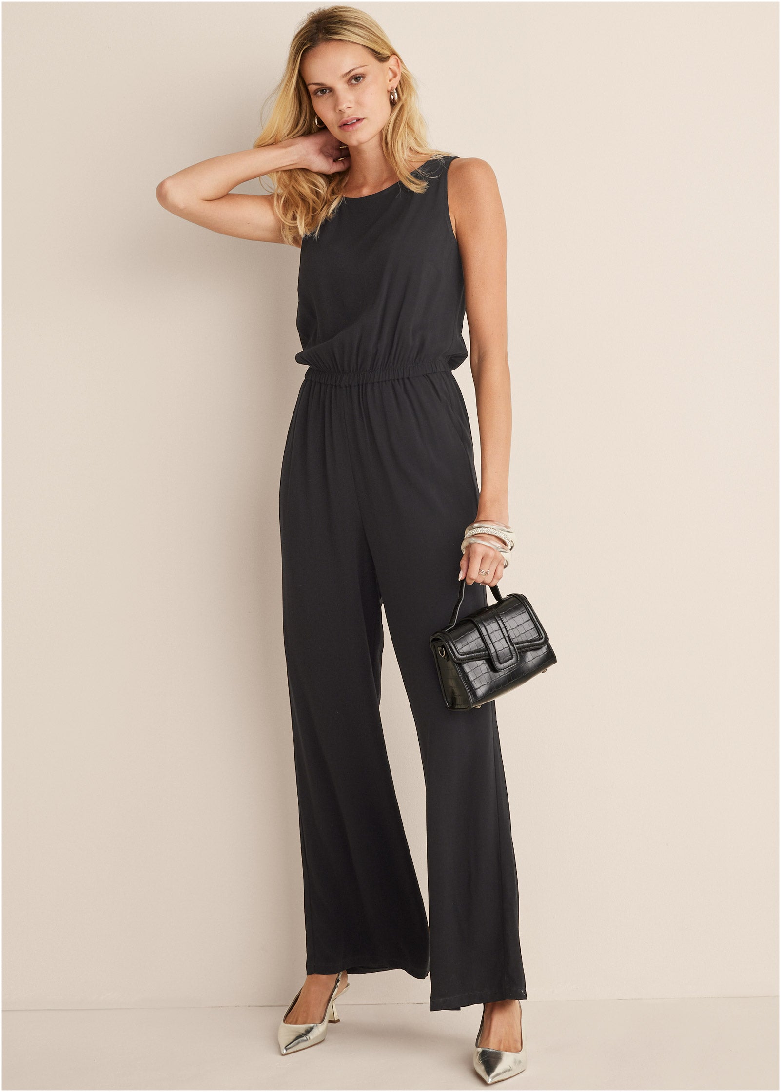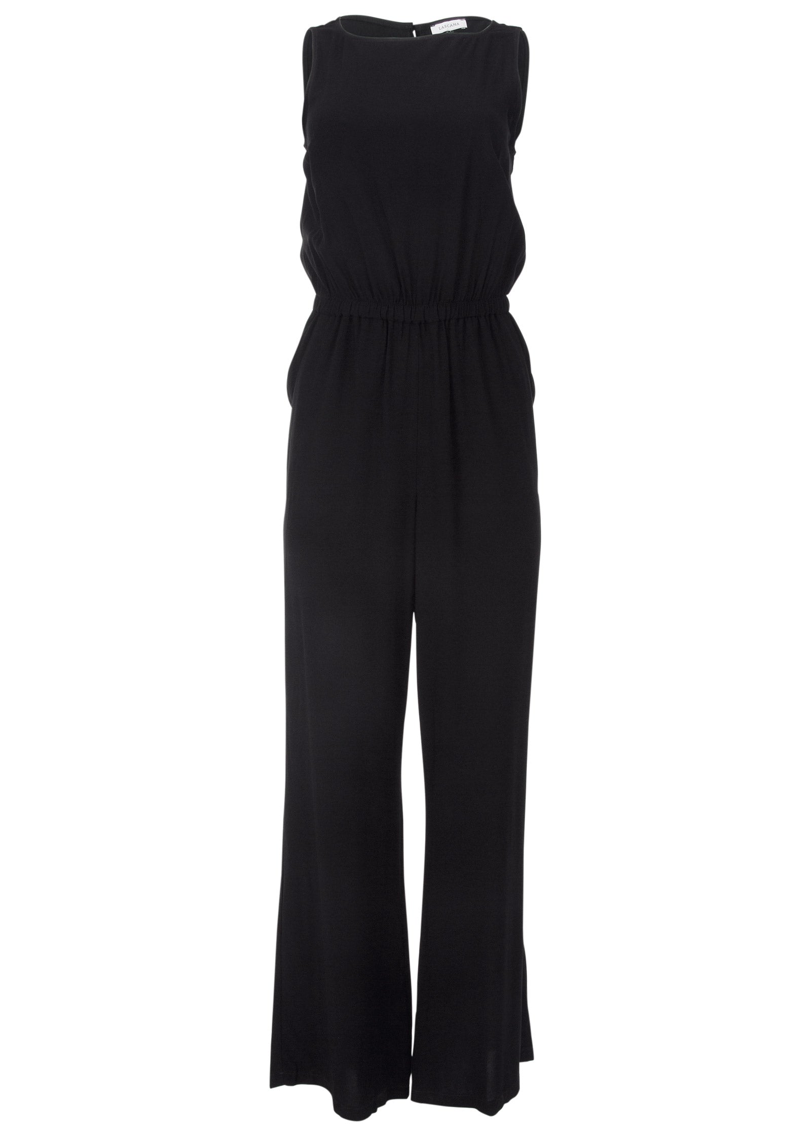 It may not have a cape. but this little black jumpsuit is a wardrobe hero. Yes. it's an all-in-one outfit (translation: easy and comfy) but it's also sleek and flattering. so much so that it magically works for just about anything on your calendar. From the office to the guest list. you'll be best dressed. * Sizes: XS (2). S (4-6). M (8-10). L (12-14). XL (16) * Sleeveless * Invisible back zip closure * Side slit pockets * By Lascana for Basic Charm * Fabric does not have stretch * Viscose. Imported