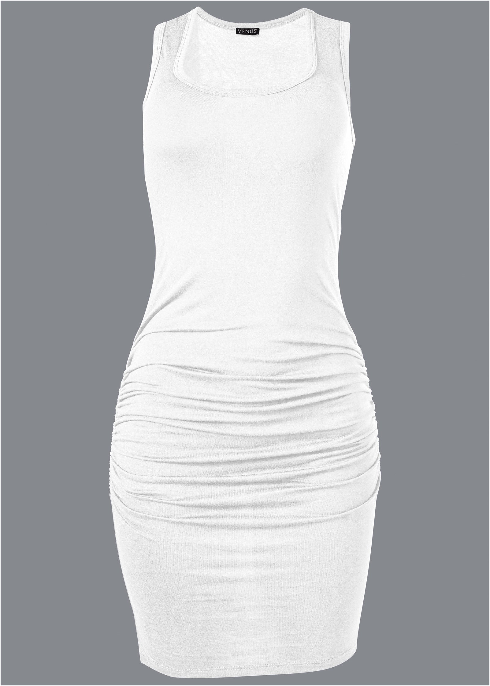 This bodycon dress flatters every shape! Hugging your curves with ruching at the side seams. this wardrobe essential smooths and accentuates from top to bottom. With its racerback design. midi length and array of color and print choices. this Bodycon Tank Dress sees you through the seasons.* Sizes: XS (2). S (4-6). M (8-10). L (12-14). XL (16) * Plus sizes: 1X (18-20). 2X (22-24). 3X (26-28)* Sleeveless tank style with racerback detail* For printed items; print placement may vary* Ruching at side seams* Hits at at the knee 40"* Fabric has stretch* Rayon/spandex. Imported