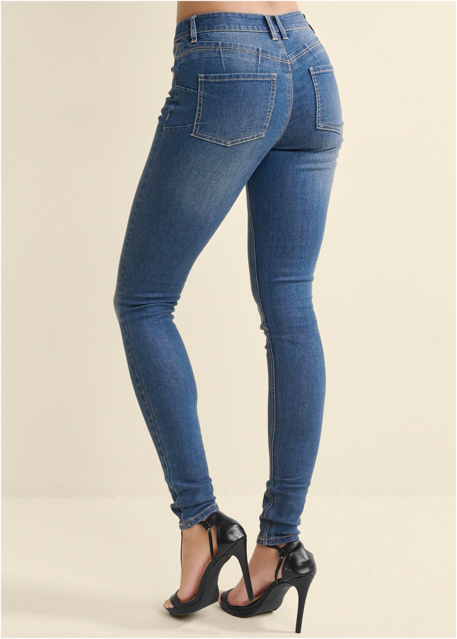 Say hello to the Lift. our best-selling. curve-enhancing jeans with a new look. Contoured seams along the back pockets and a sweetheart-shaped yoke below the waistband give the illusion of a lifted. curvier booty. You'll love this figure-flattering pair so much. you'll never want to take them off.* Available in plus sizes * Mid rise * 5-pocket styling * Button and zipper closure * 9” rise with 10” leg opening * Inseams: 29" (S). 31" (R). 33" (L) * White denim has minimal stretch; all other washes have more stretch * WH: Cotton/spandex. Imported * BKDE. DW. MW: Cotton/poly/spandex. Imported