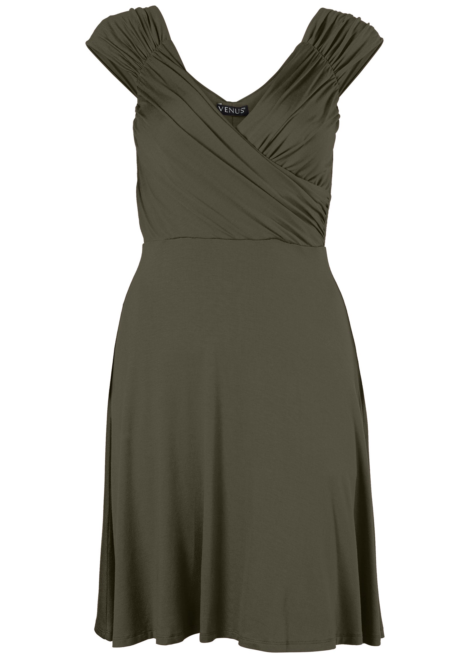 Get ready to go in an instant when you pull on this Draped Front Dress. Classic cap sleeves with gathers match to the gathered surplice neckline that wraps the bodice. finishing in the back in a low cut that brings feminine appeal. Twirly skirt and stretchy fabric assure a ready-for-everything dress!* Sizes: XS (2). S (4-6). M (8-10). L (12-14). XL (16)* Plus sizes: 1X (18-20). 2X (22-24). 3X (26-28)* Surplice neckline with gathered fabric* Cap sleeves* Fabric has stretch* Viscose/spandex. Imported
