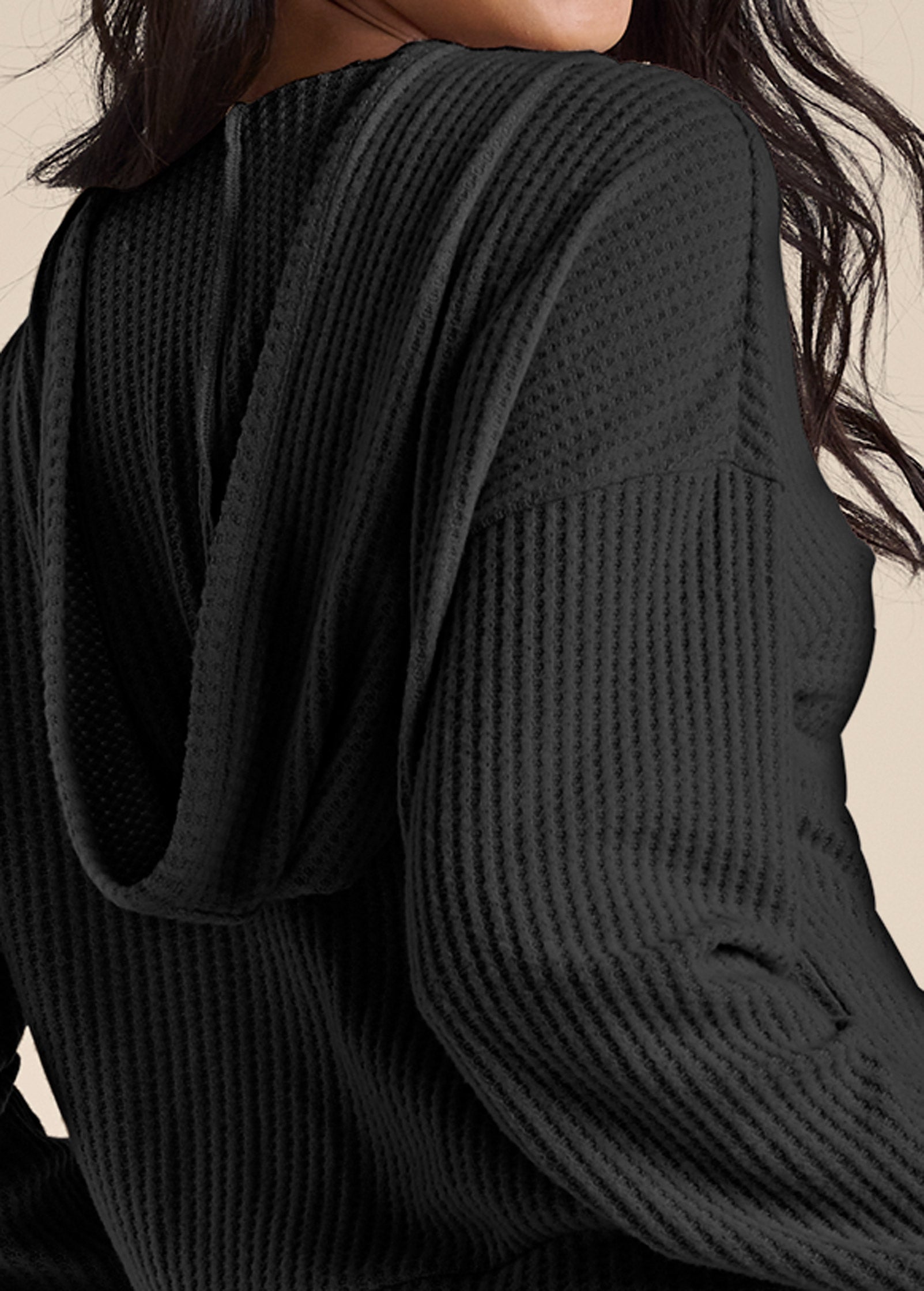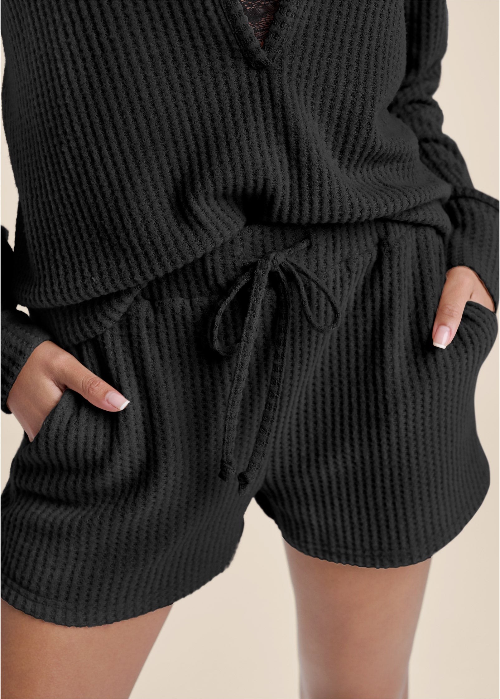 Brushed Waffle Short Set - Black