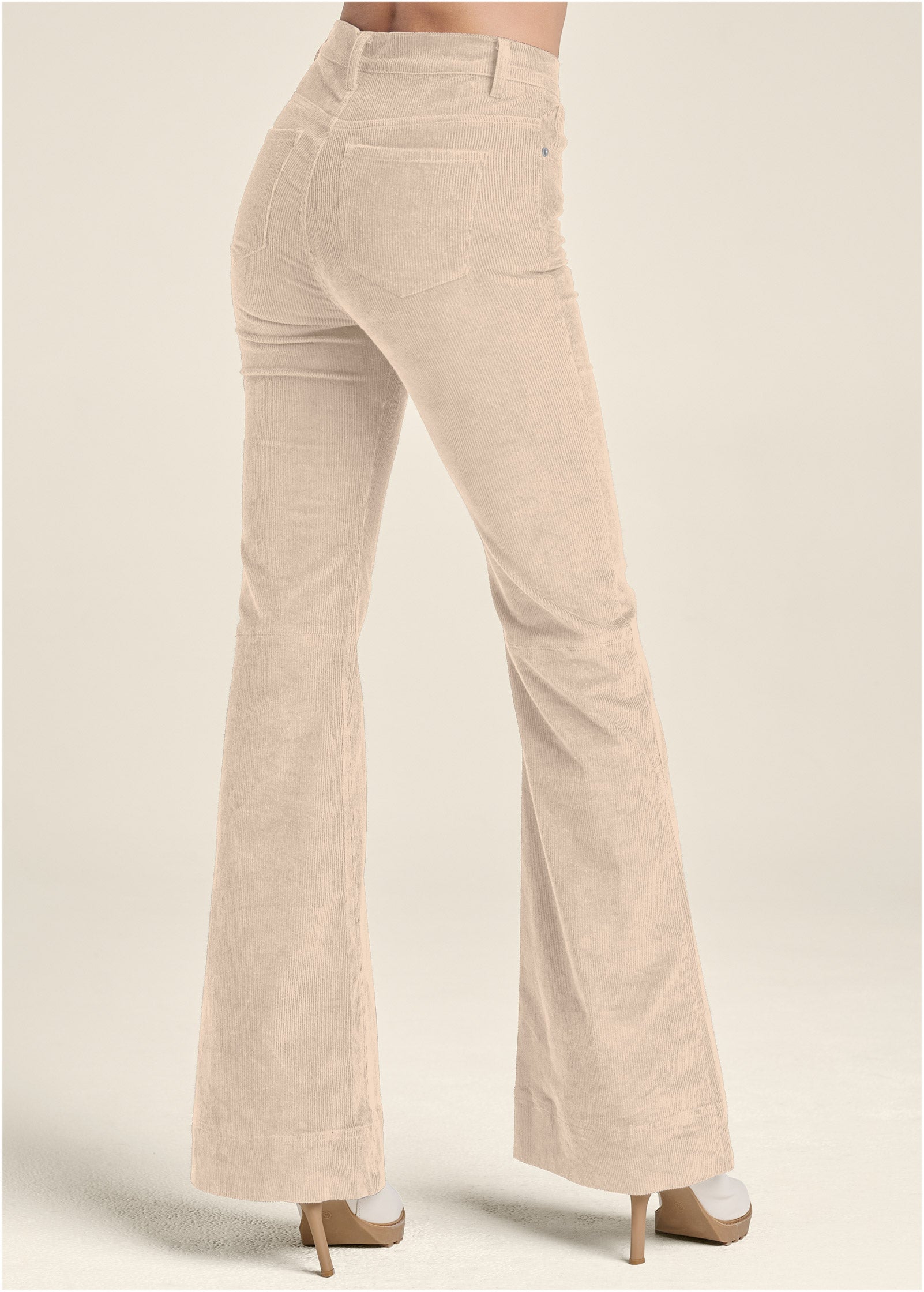 Get in touch with the retro-goes-modern trend when you pull on this flared pair of 5-pocket corduroy pants. Soft-to-the-touch corduroy refreshes the vintage-inspired silhouette. with a high waist made for tucking in a top or bodysuit. Add boho extras to take the free-spirited vibe up to the next level.* Five-pocket styling* Flare legs* High waist with zipper/button closure* 33" inseam* Fabric does not have stretch* Cotton/spandex. Imported