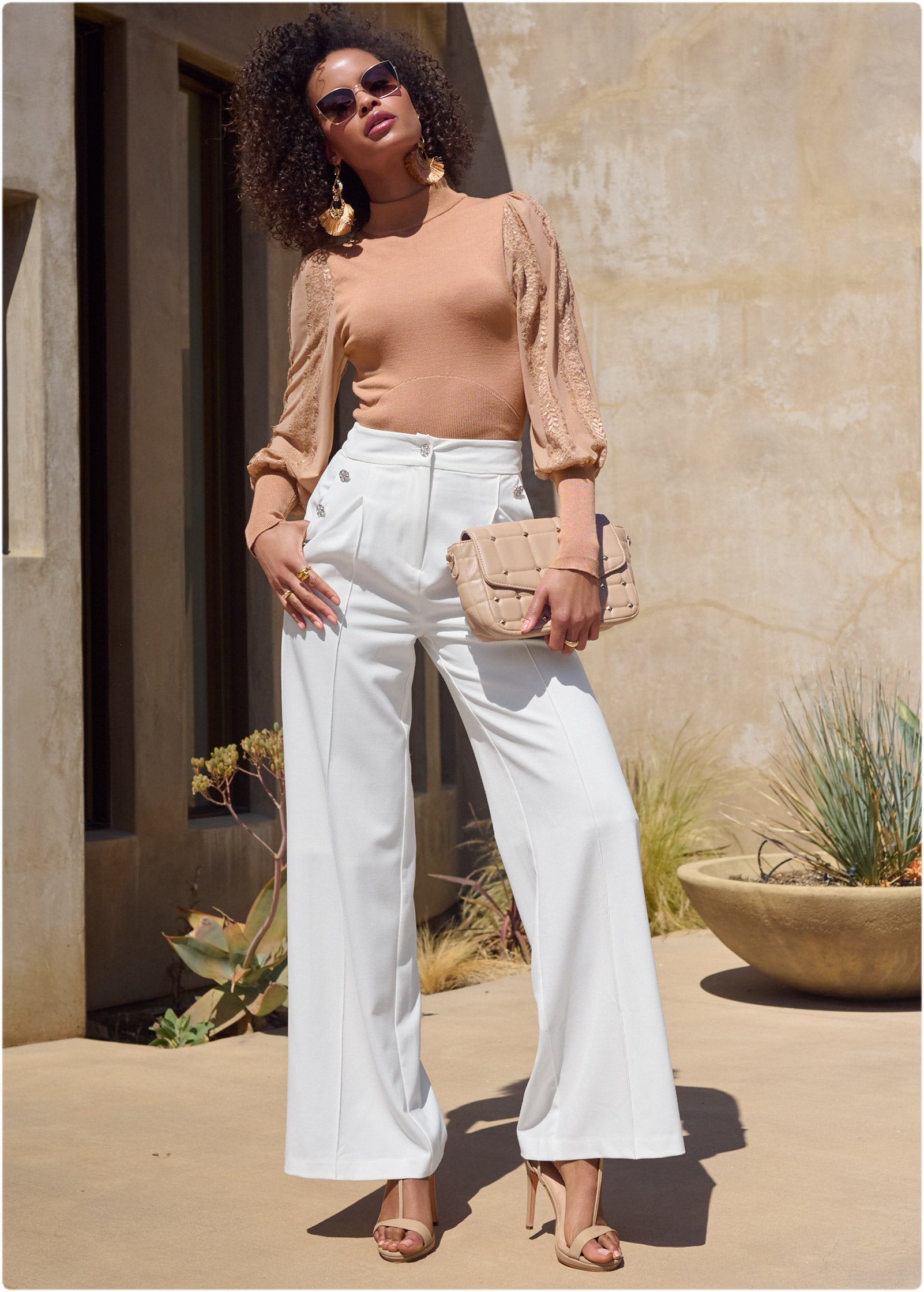 You need a place to tuck away your night-out essentials. so make it chic! This quilted handbag is detailed with edgy studs and can be carried as a clutch or worn over your shoulder with the optional chain strap. The magnetic closure secures the front flap. finishing this polished yet functional accessory!* Crossbody chain strap can tuck in to become a clutch* Semi-lined* Magnetic closure* Quilted with stud detailing* Polyurethane. Imported