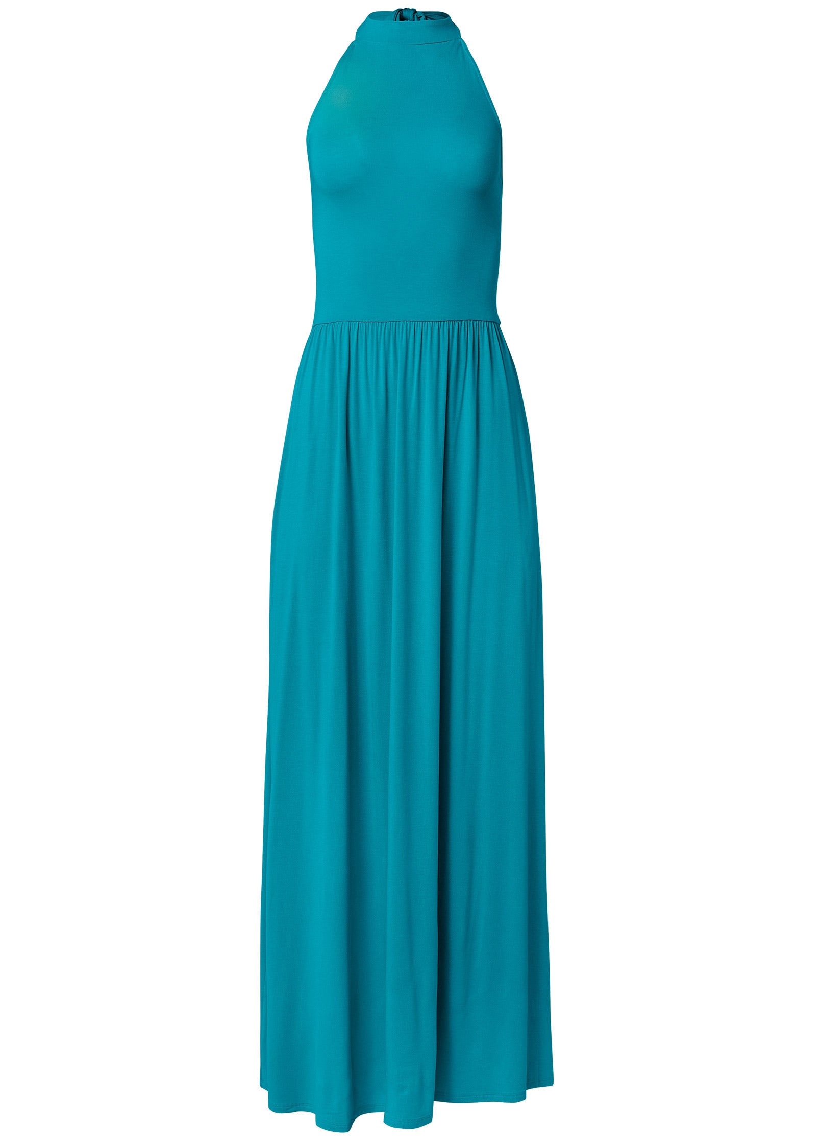 Comfy stretch fabric makes this maxi a spring to summer must-have! The high neckline and fitted bodice add coverage to the front. securing behind the neck in a halter tie. while bare shoulders and open back keep it alluringly Glamorous. Beach breezes have nothing on this easy made-for-vacay dress!* Sizes: XS (2). S (4-6). M (8-10). L (12-14). XL (16)* Plus sizes: 1X (18-20). 2X (22-24). 3X (26-28)* Halter tie neckline* Side seam pockets* 53" maxi length* Fabric has stretch* Viscose/spandex. Imported