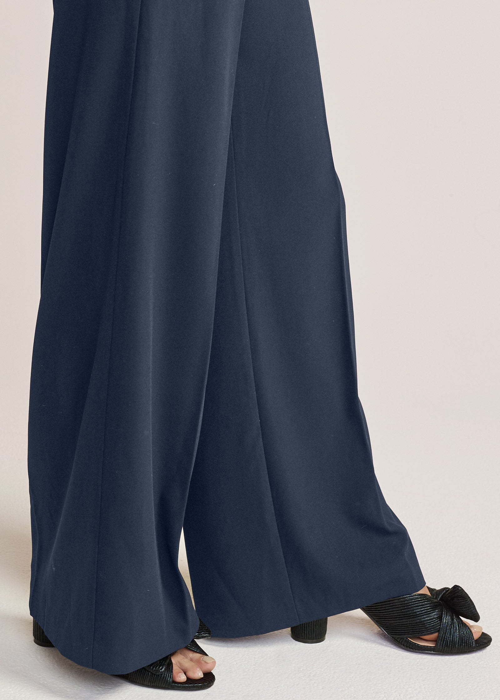 Weekend wear meets work-week chic in these casual wide-leg trousers! Comfortable. stretchy fabric feels like you're lounging. but the pleated front assures a tailored look for going out and about. Thanks to the high waist and loose fit. these pants promise an elevated silhouette you'll want to wear every day of the week.* Available in plus sizes* High-rise waist* Zipper/button closure* Front pleat* 33" inseam* Fabric has stretch* Poly/elastane. Imported