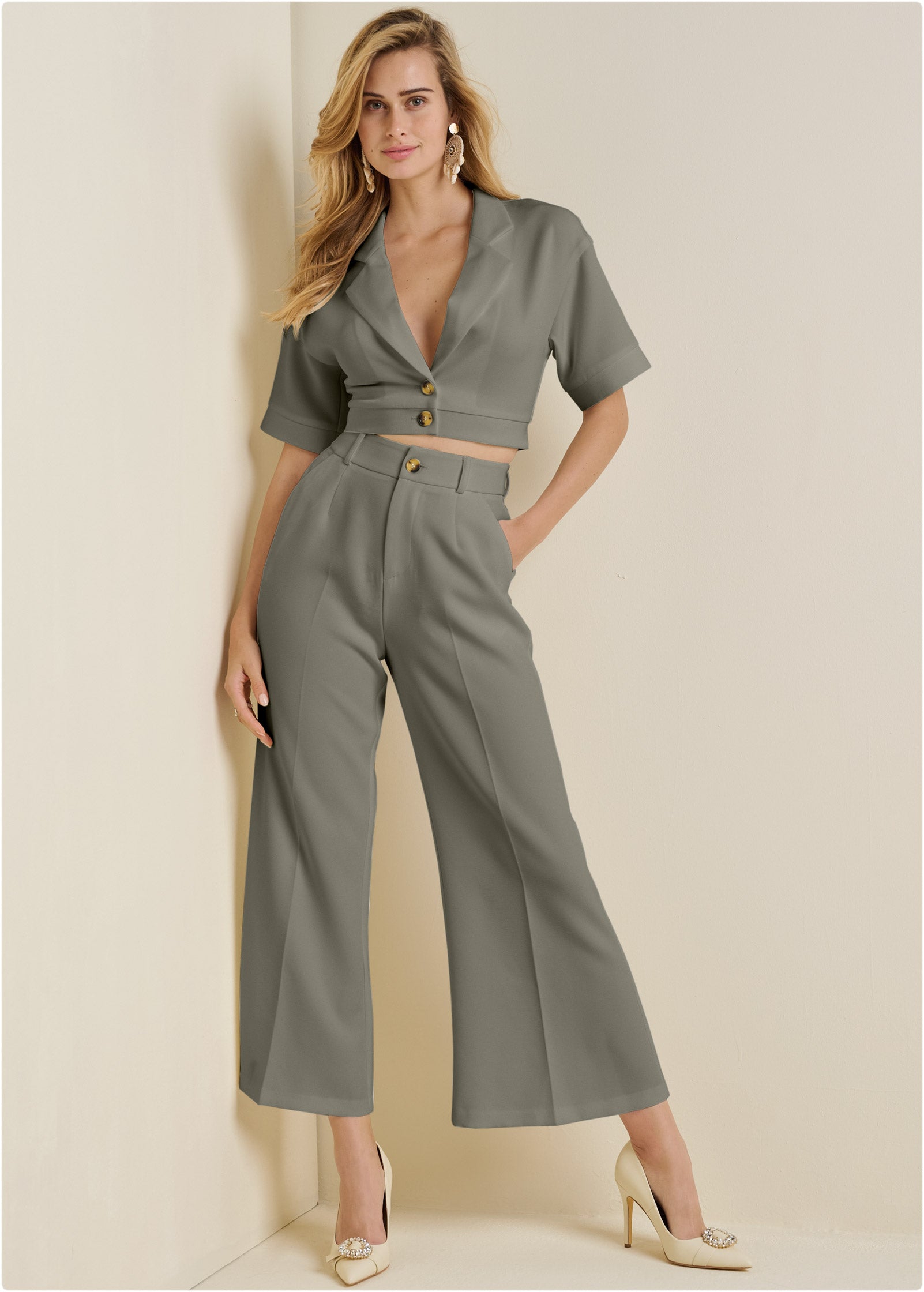 From workday to weeknight plans. these classic luxe pumps dress you up for it all. The sleek finish plays off the embellished ring detail to assure you shine wherever you're headed. Polished with a pointed toe. this pair promises bold style.* Pointed toe* Embellished ring trim* 4" approx. heel height* Polyurethane. Imported