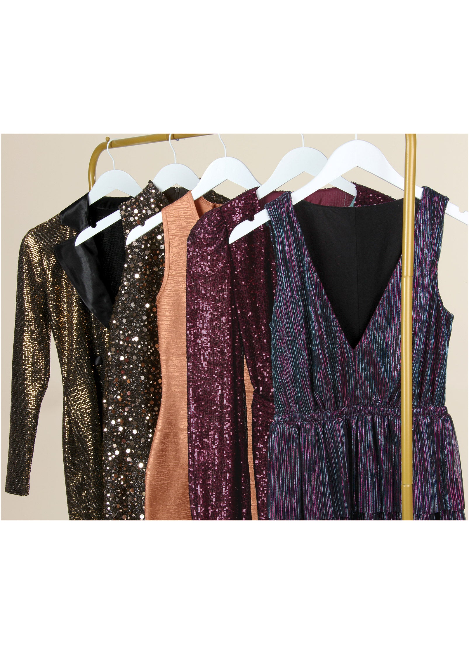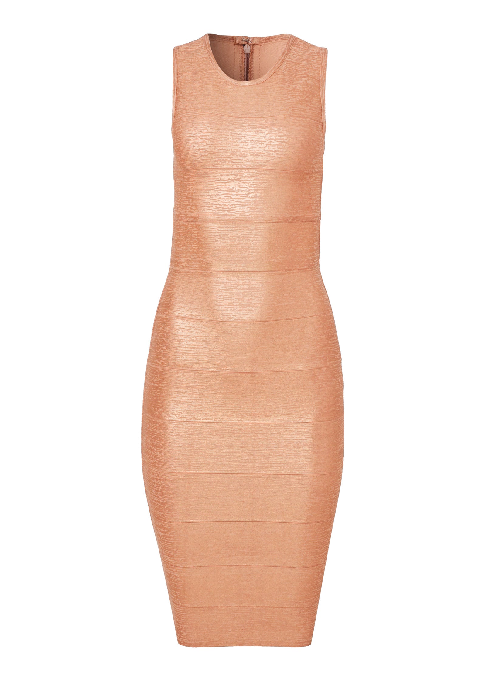The equivalent of giving your curves a big hug: this bandage dress. Fitted from sleeveless neckline to mini hem. the stretch silhouette conforms to your figure for a flattering finish. Slip it on. add the extras and you're ready for your next occasion!* Sizes: XS (2). S (4-6). M (8-10). L (12-14). XL (16) * Plus sizes: 1X (18-20). 2X (22-24). 3X (26-28)* Fabric has stretch* Mini length 34" approx. length; varies by size* Invisible back zipper closure* Rose gold color has subtle shimmer* Nylon/spandex. Imported