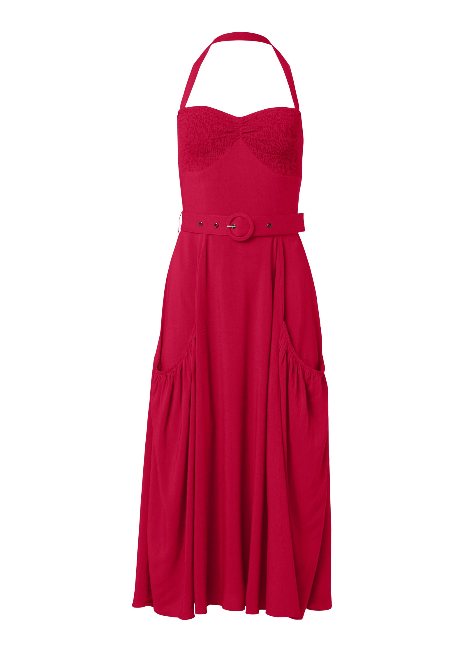 Belted Halter Midi Dress - Red