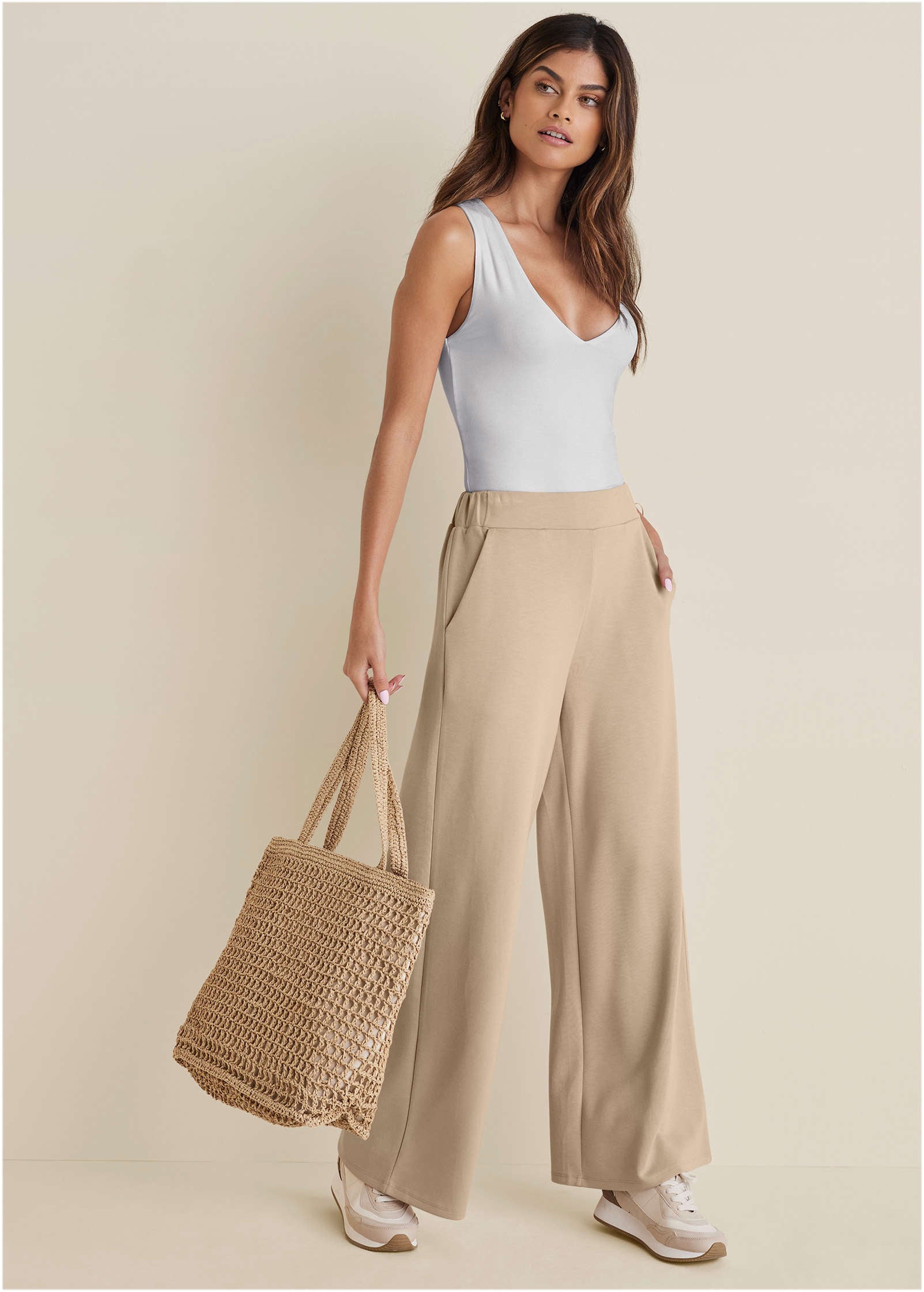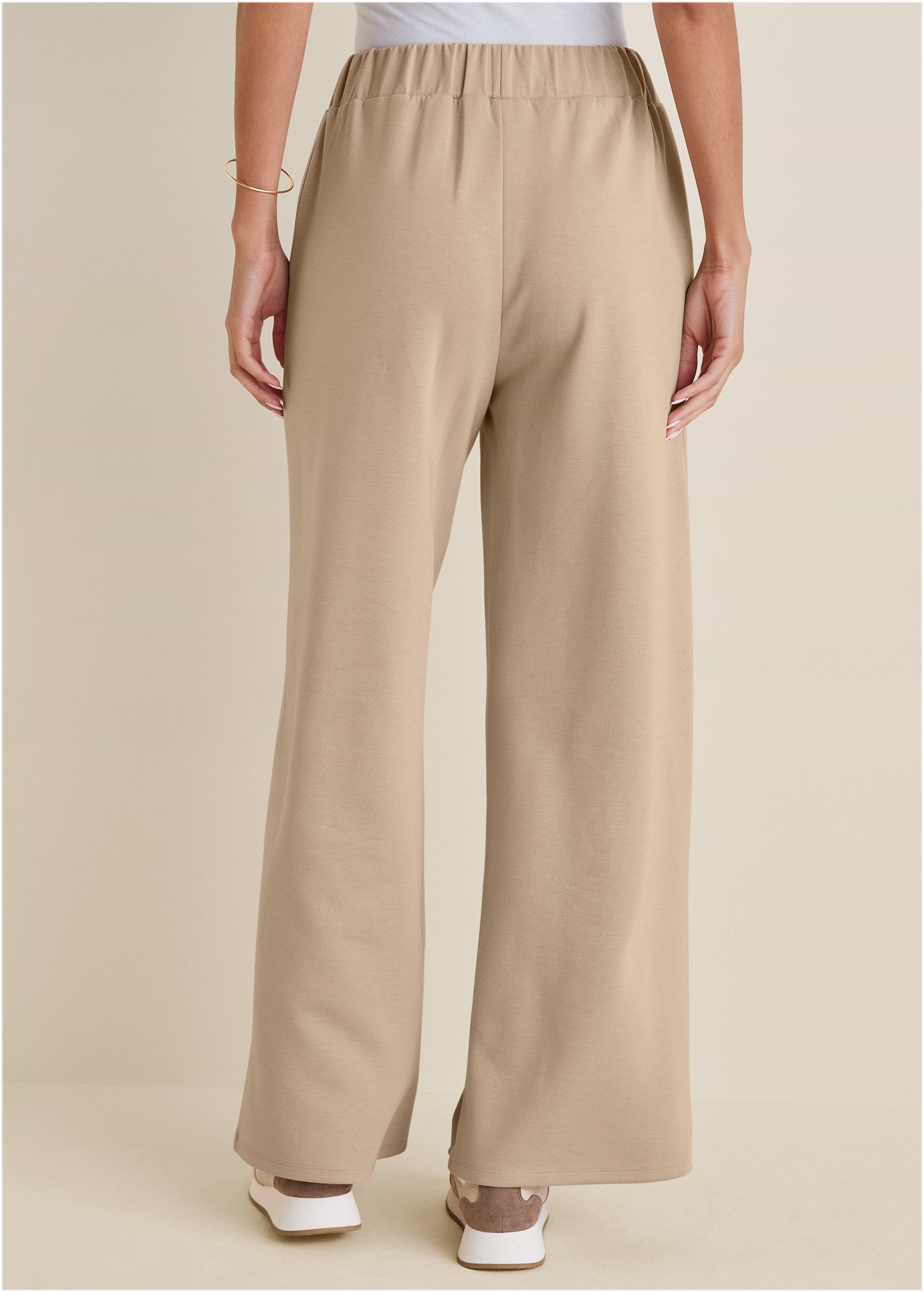 You're looking at the chicest pair of sweatpants you ever did see. This wide-leg pair has a sleek look so you can wear them out of the house and no one will know you're wearing sweats (the dream!). Also noteworthy: they're made in our signature Double Knit fabric that's ultra-lightweight and so supersoft you'll feel like you're wearing a cloud. * Sizes: XS (2). S (4-6). M (8-10). L (12-14). XL (16) * Fabric has stretch * No closure; pull-on style * Functional side pockets * Fully lined * Poly/Ecovero viscose/spandex. Imported