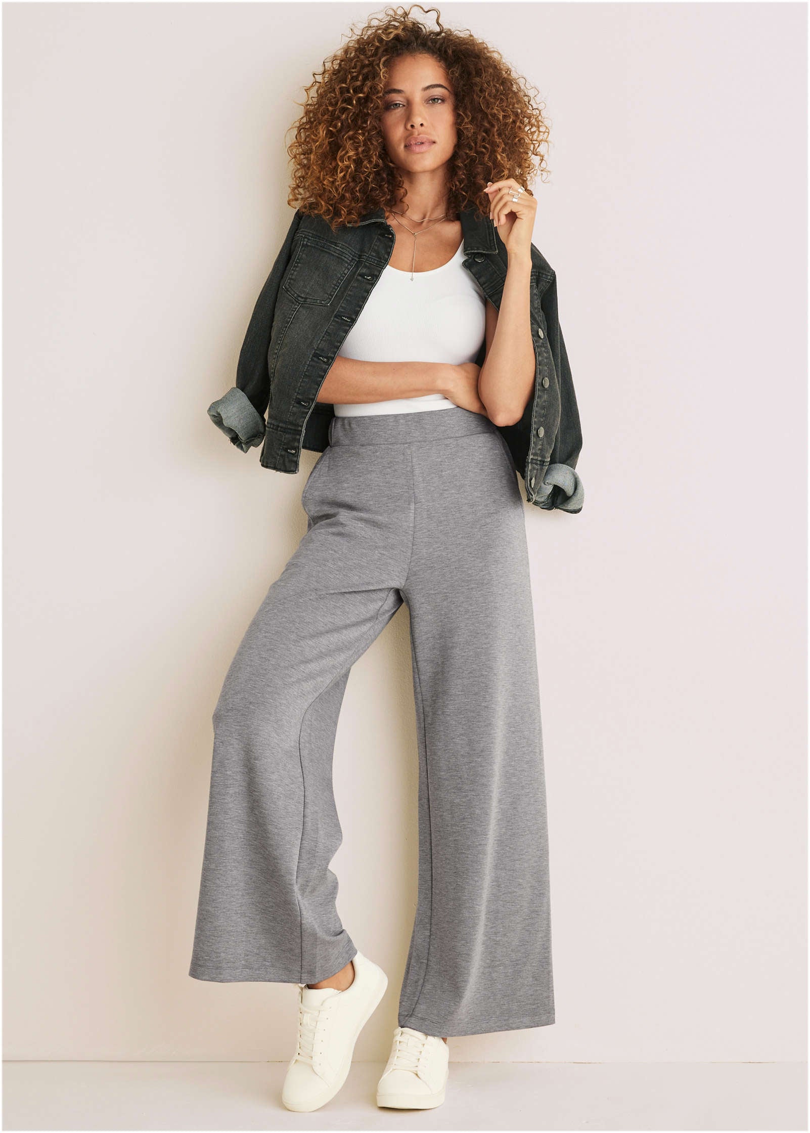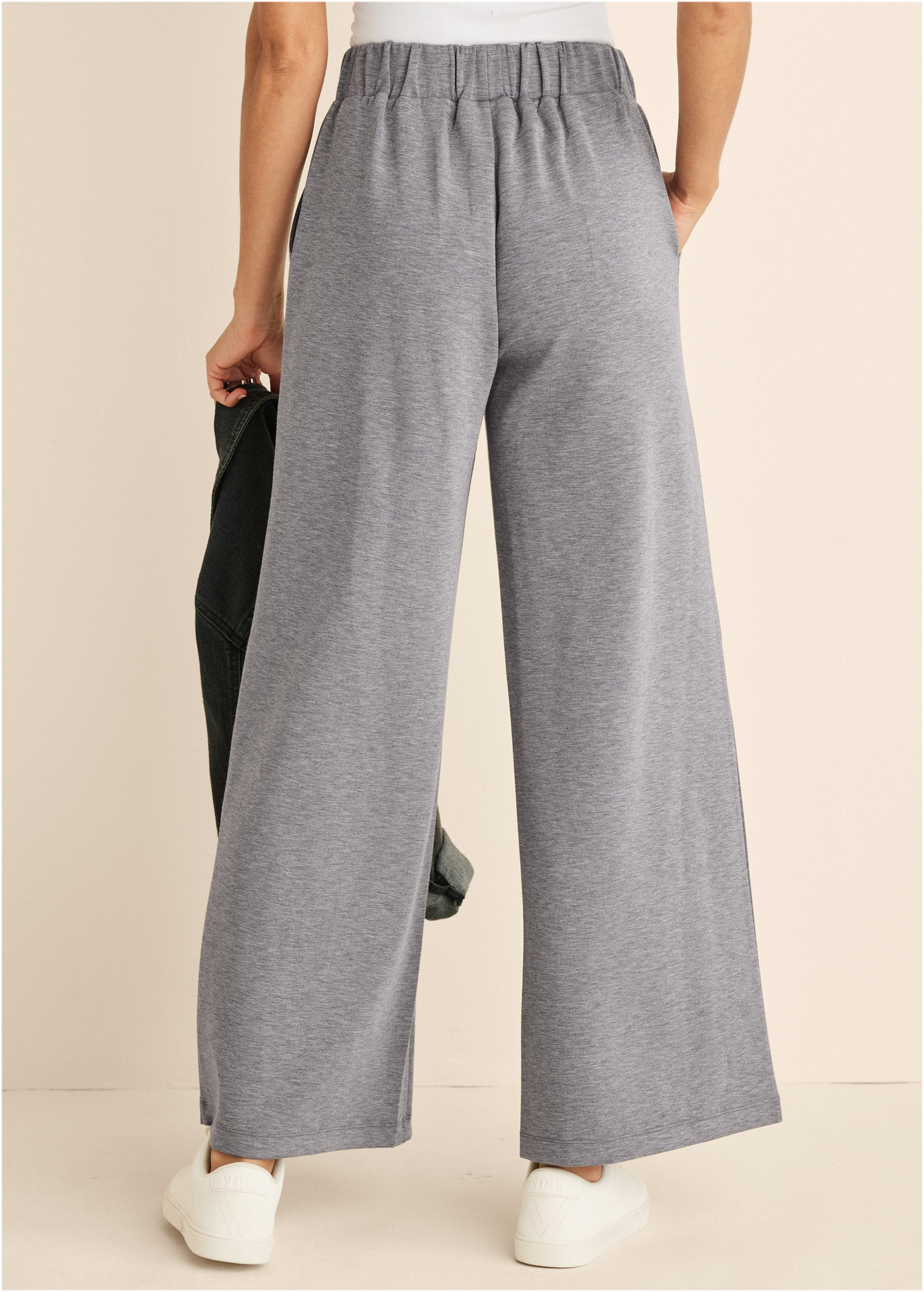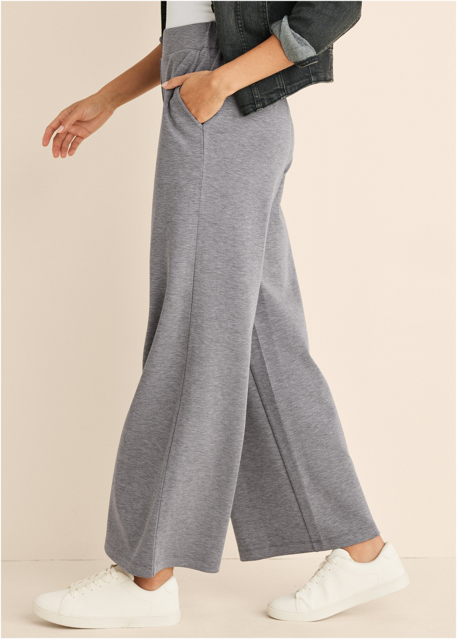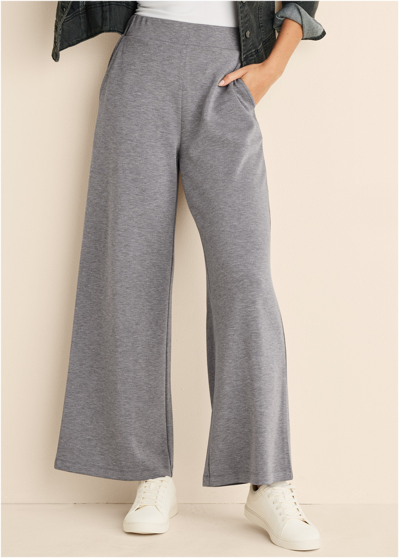 Double Knit Wide Leg Pants - Medium Heather Grey