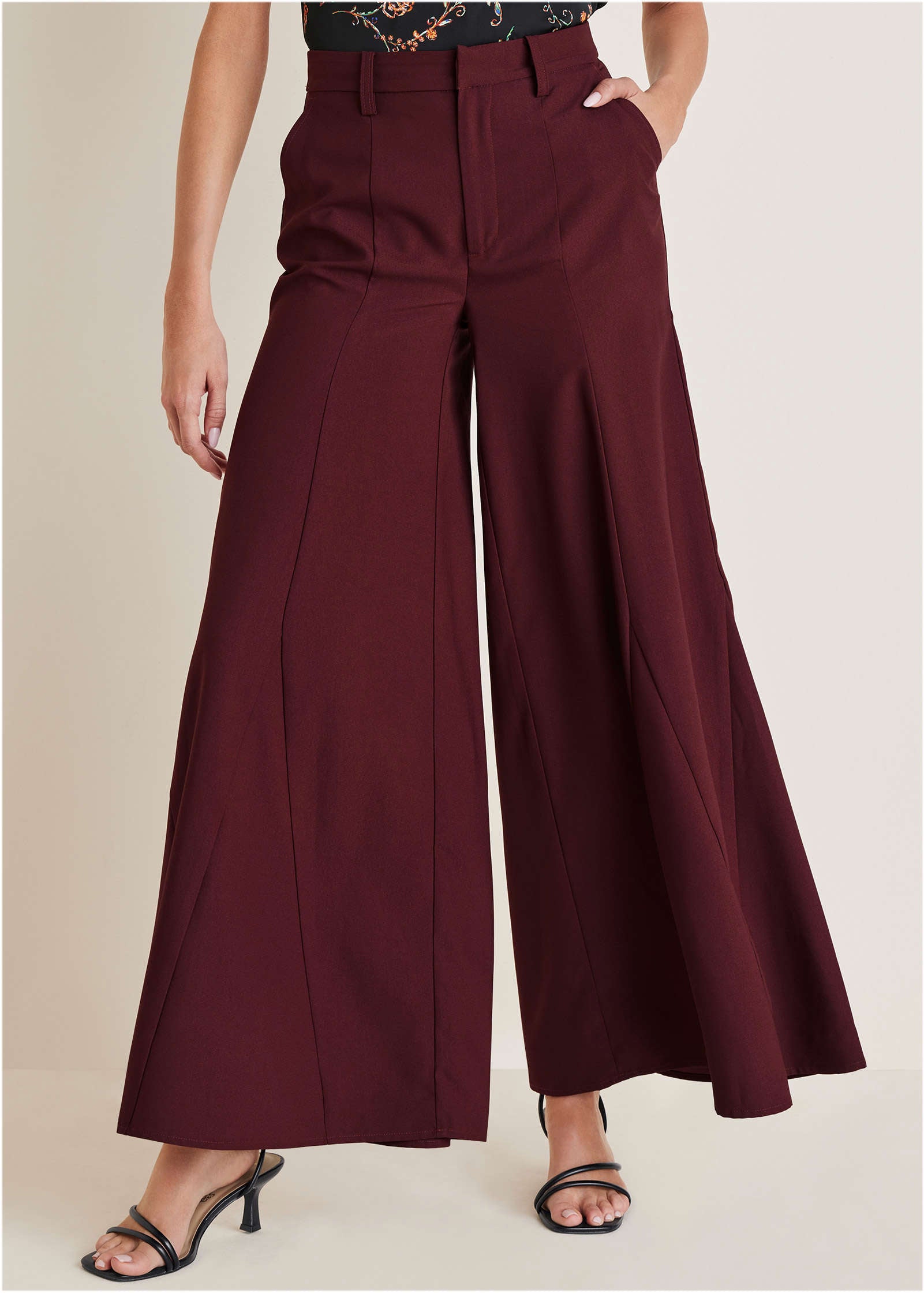 These pants give any outfit a serious leg up! Wide. flared legs have a swingy shape that's so bold. they instantly make any outfit a LOOK. With a high-rise and pleats down the front. they're polished enough for the office while trend-forward enough for an evening out. Pair with heels and a slinky tank. then add a blazer for extra coverage.* Available in petite sizes* Inseam: 31" missy; 28" petite* High rise* Side pockets* Zipper and button closure* Wide legs* Polyester. Imported