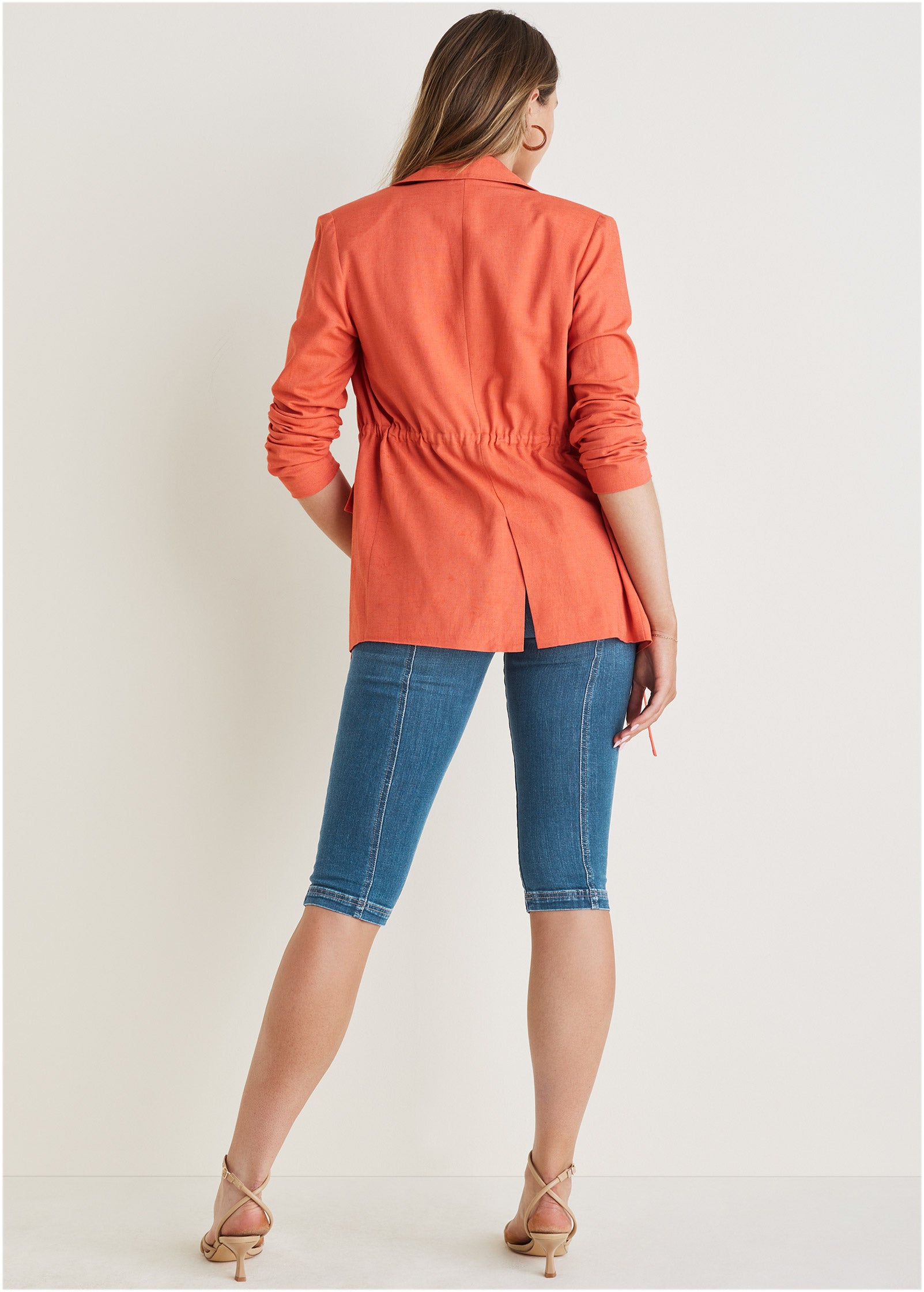 Linen Drawstring Blazer - Burnt Orange