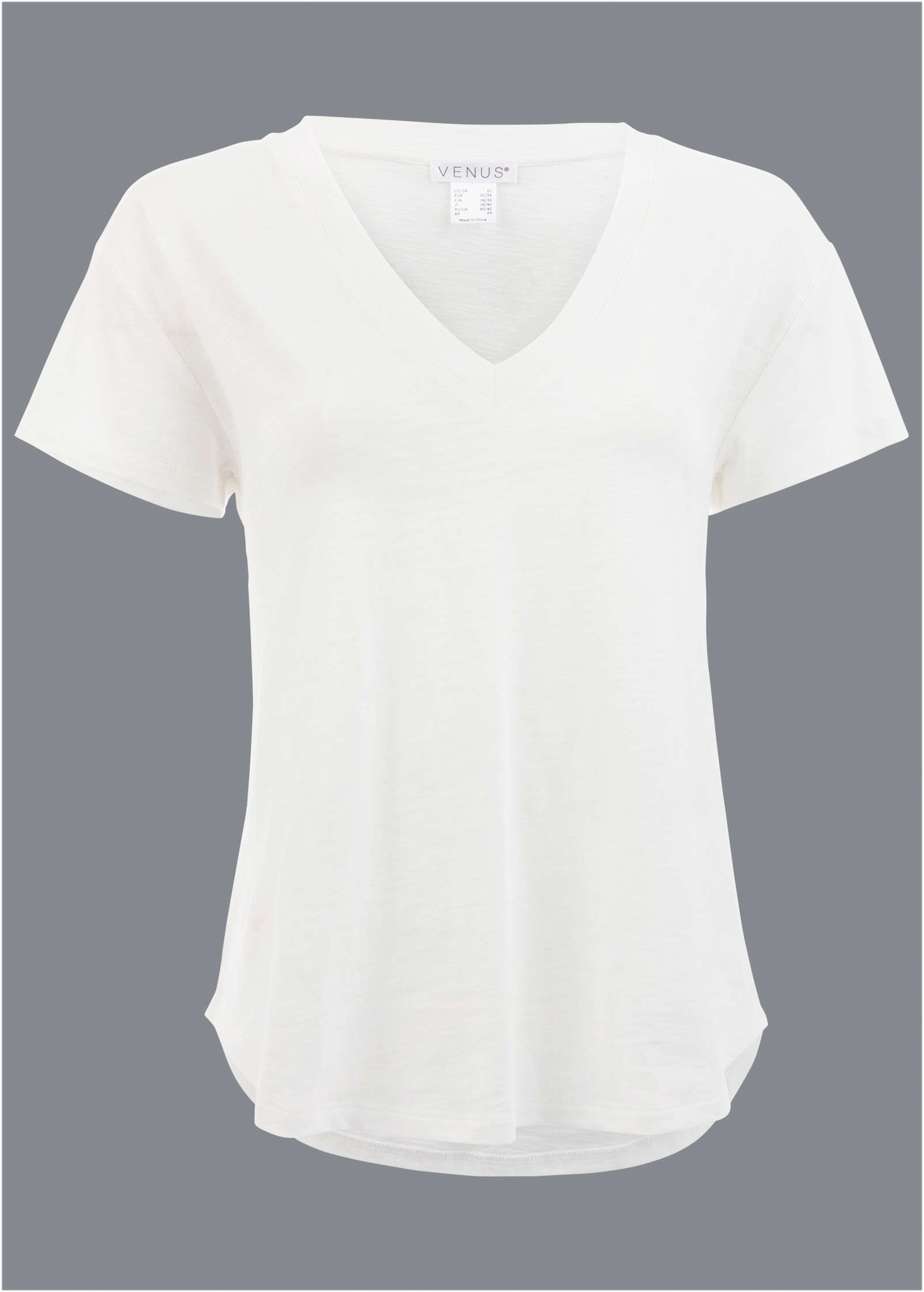 Let's be clear. there's nothing "basic" about this V-neck tee. It may be a versatile wardrobe staple and a styling dream. but the attention to detail makes it special. We gave it a perfectly relaxed fit and rounded hem for a feminine and elevated feel. Plus. it's made in our Weekend Slub cotton. so it's live-in soft and lightweight with just the right amount of stretch for a laid-back feel 24/7. * Sizes: XS (2). S (4-6). M (8-10). L (12-14). XL (16)* Plus sizes: 1X (18-20). 2X (22-24). 3X (26-28)* 25" from shoulder* Short sleeves* V-neck* Relaxed fit* Weekend Slub (Organic cotton. Imported)