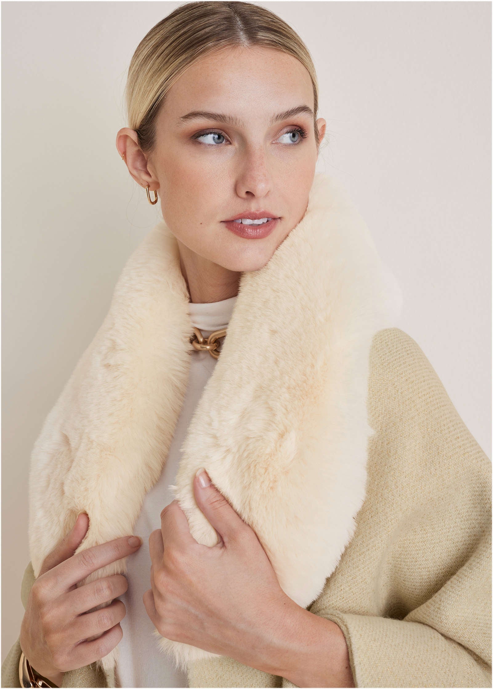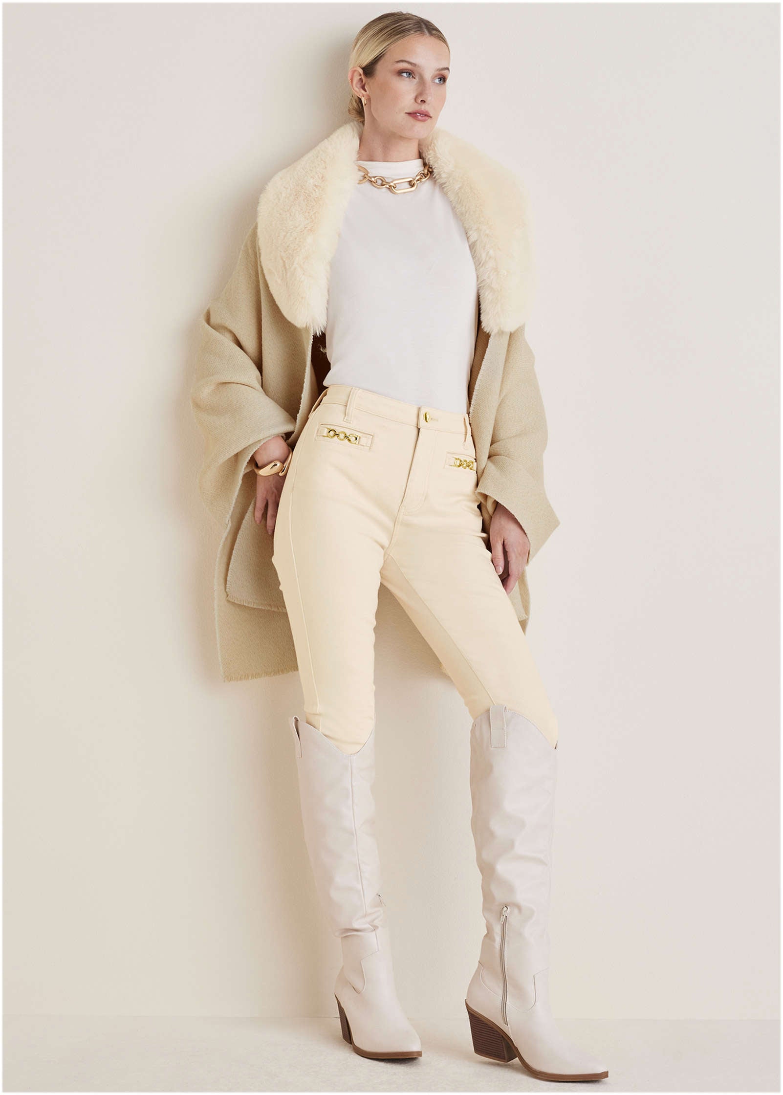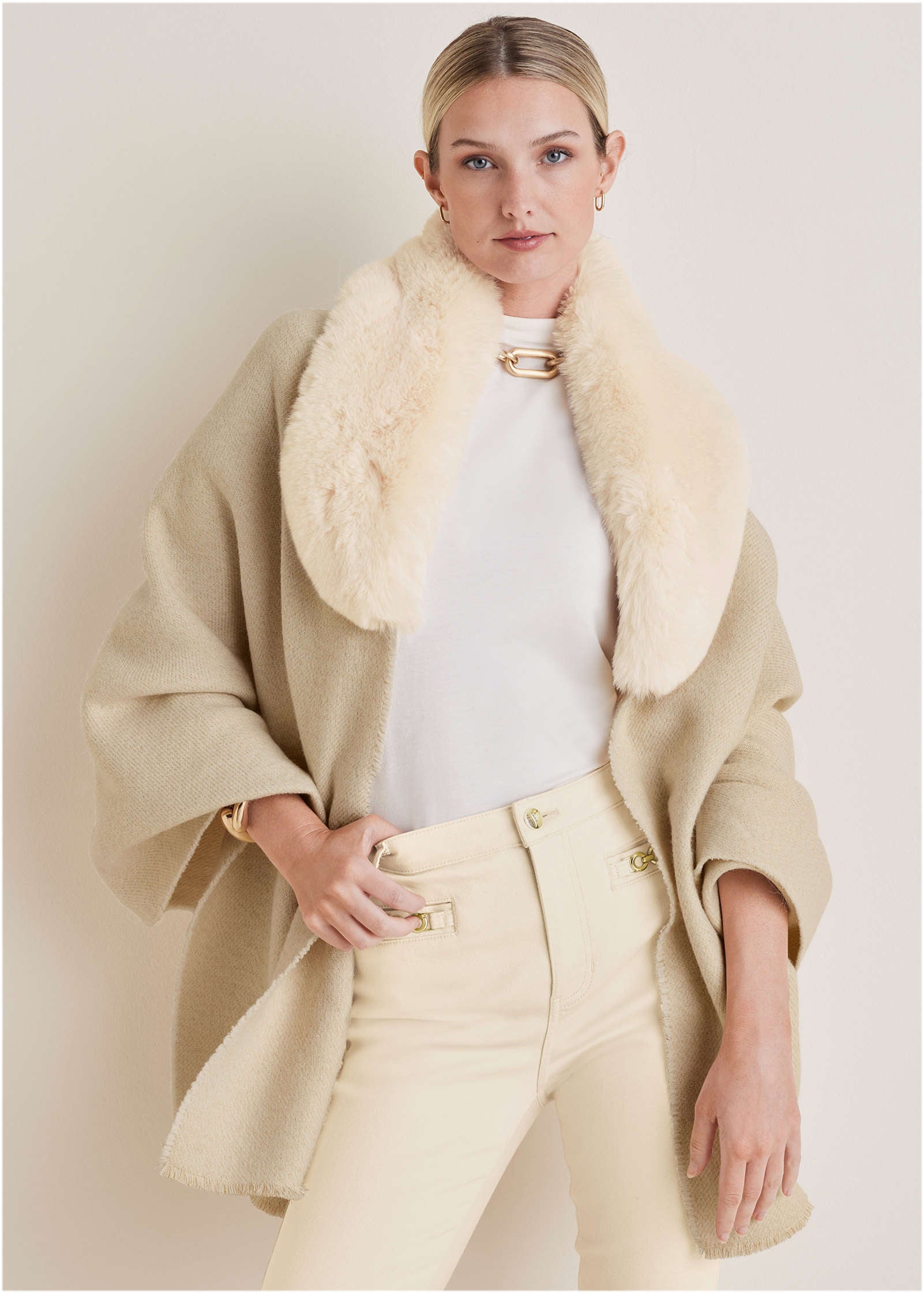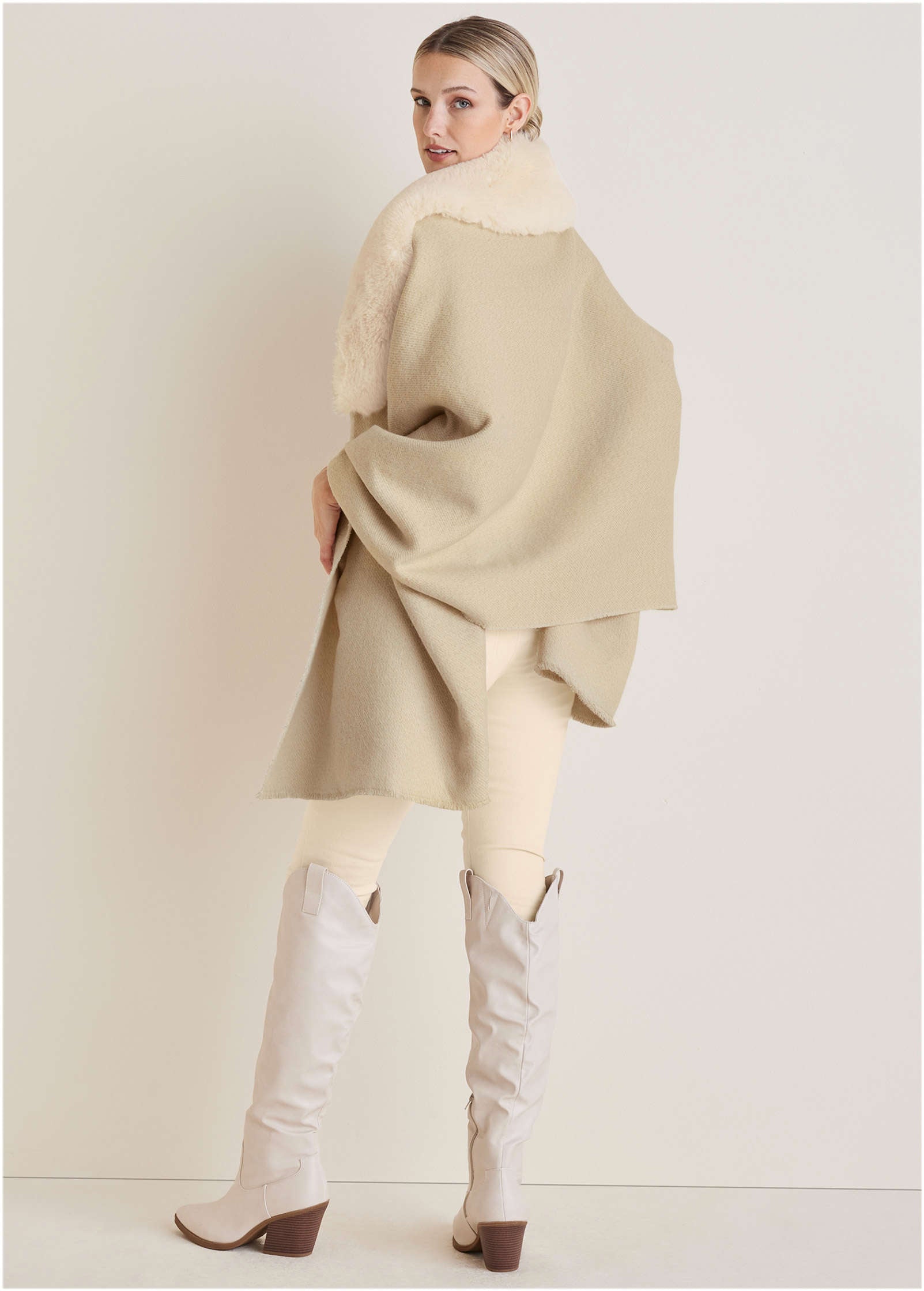 This faux-fur trim shawl is the closest you'll get to wrapping yourself in a blanket while in public. With plush faux-fur trim it's equally as soft and cozy. but way more glam. Over your party dress or tossed over your daytime 'fit. it instantly elevates any look.* One size* Polyester. Imported