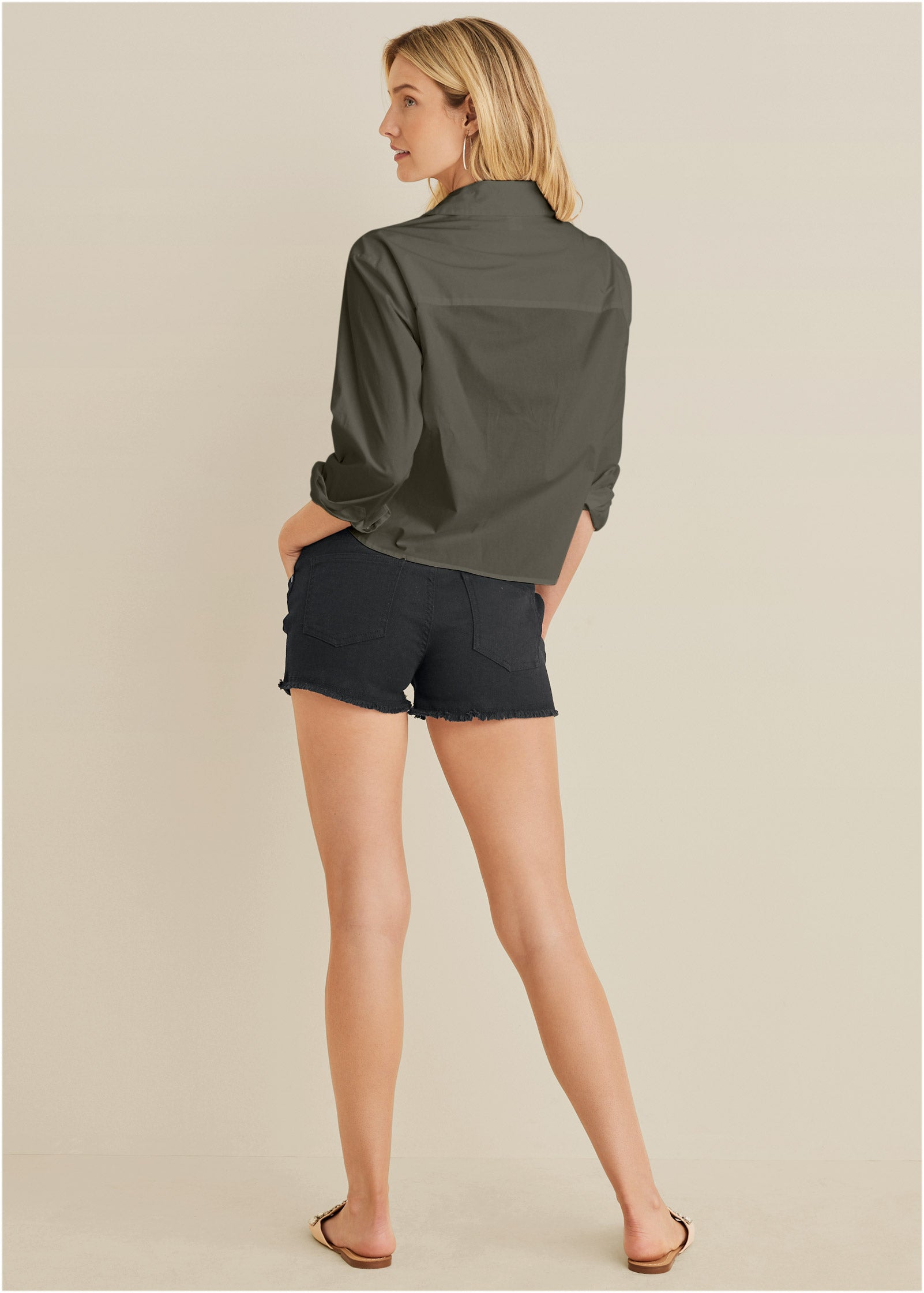 Cropped Button-Down - Olive
