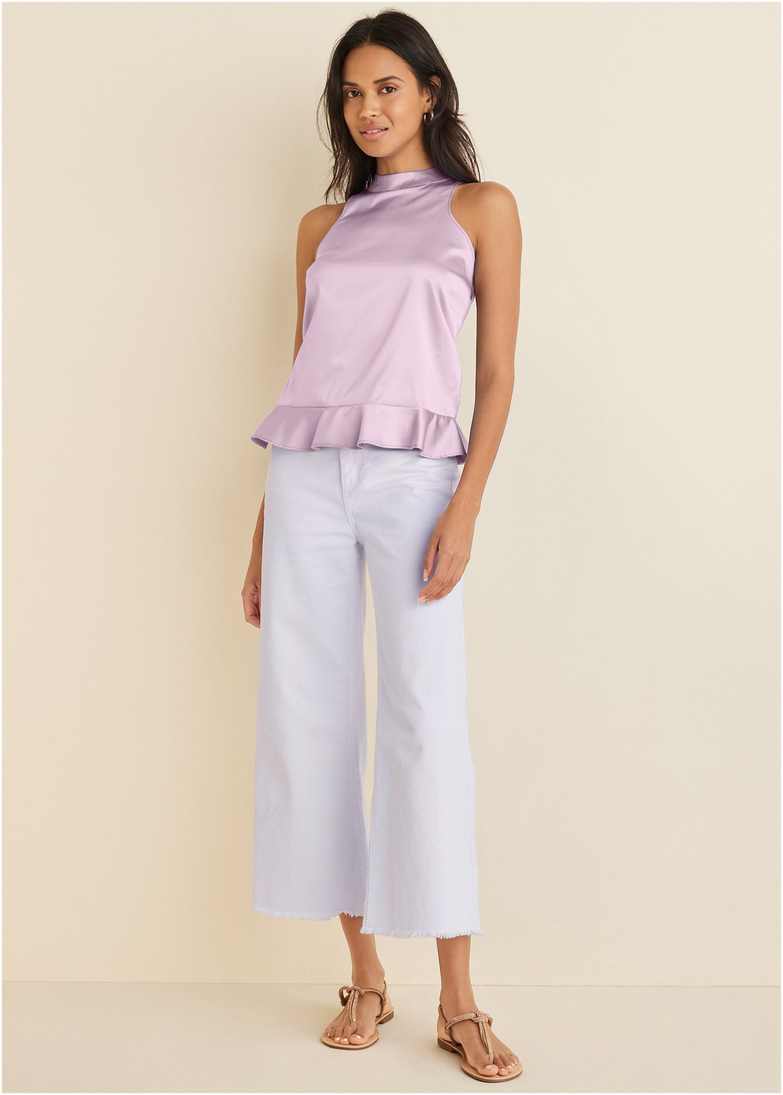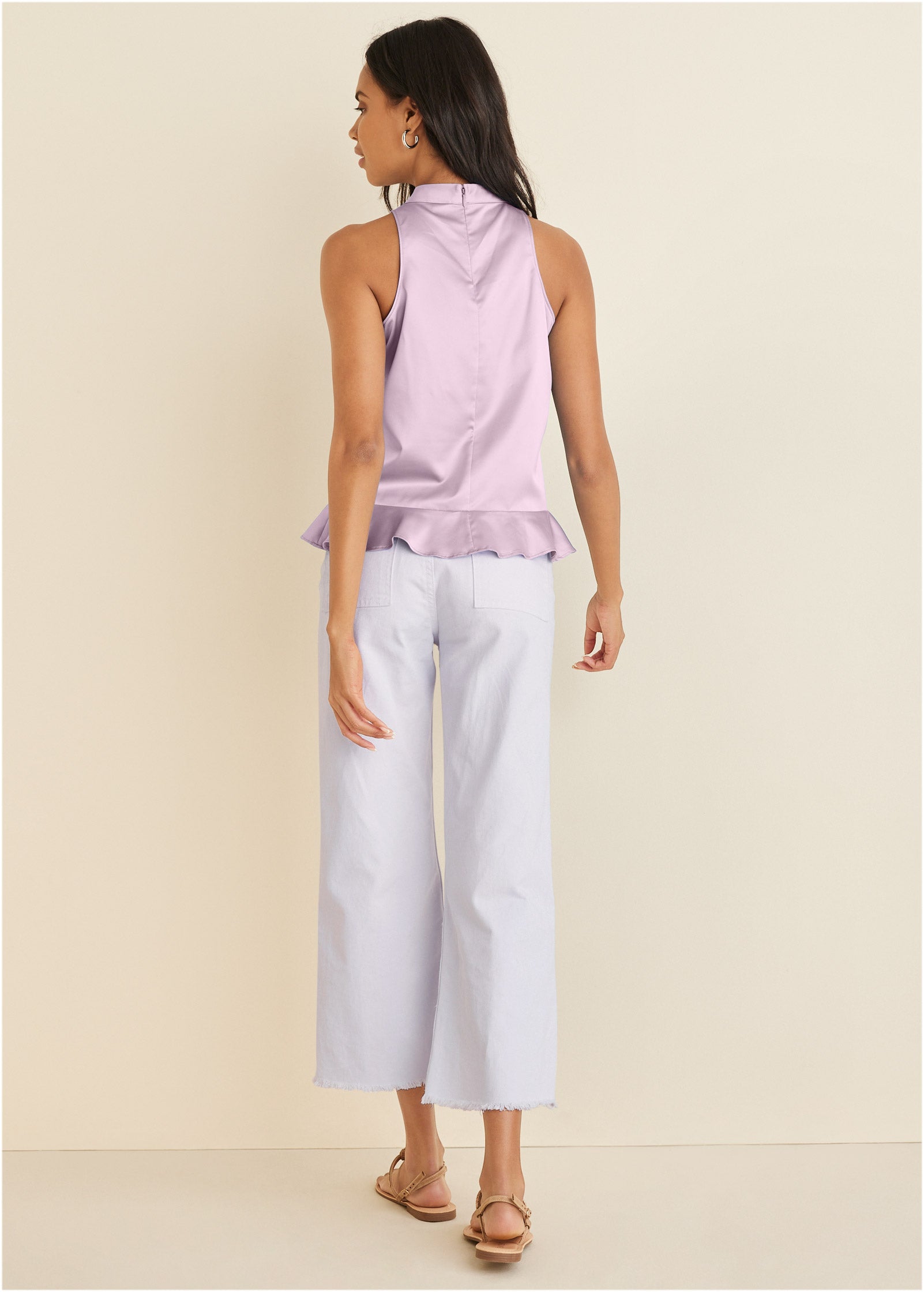 When the occasion calls for dressing up. but it's not quite a dress situation. make this elevated top your go-to. Done in our EffortLuxe fabric. it has a silky feel and subtle sheen with a hint of comfort stretch—which. BTW. means it doesn't wrinkle! The mock neckline and feminine peplum hem are elegant details that make this top feel special.* Sleeveless* Mock Neck* Peplum hem* Invisible back zipper closure* EffortLuxe (Poly/spandex. Imported)