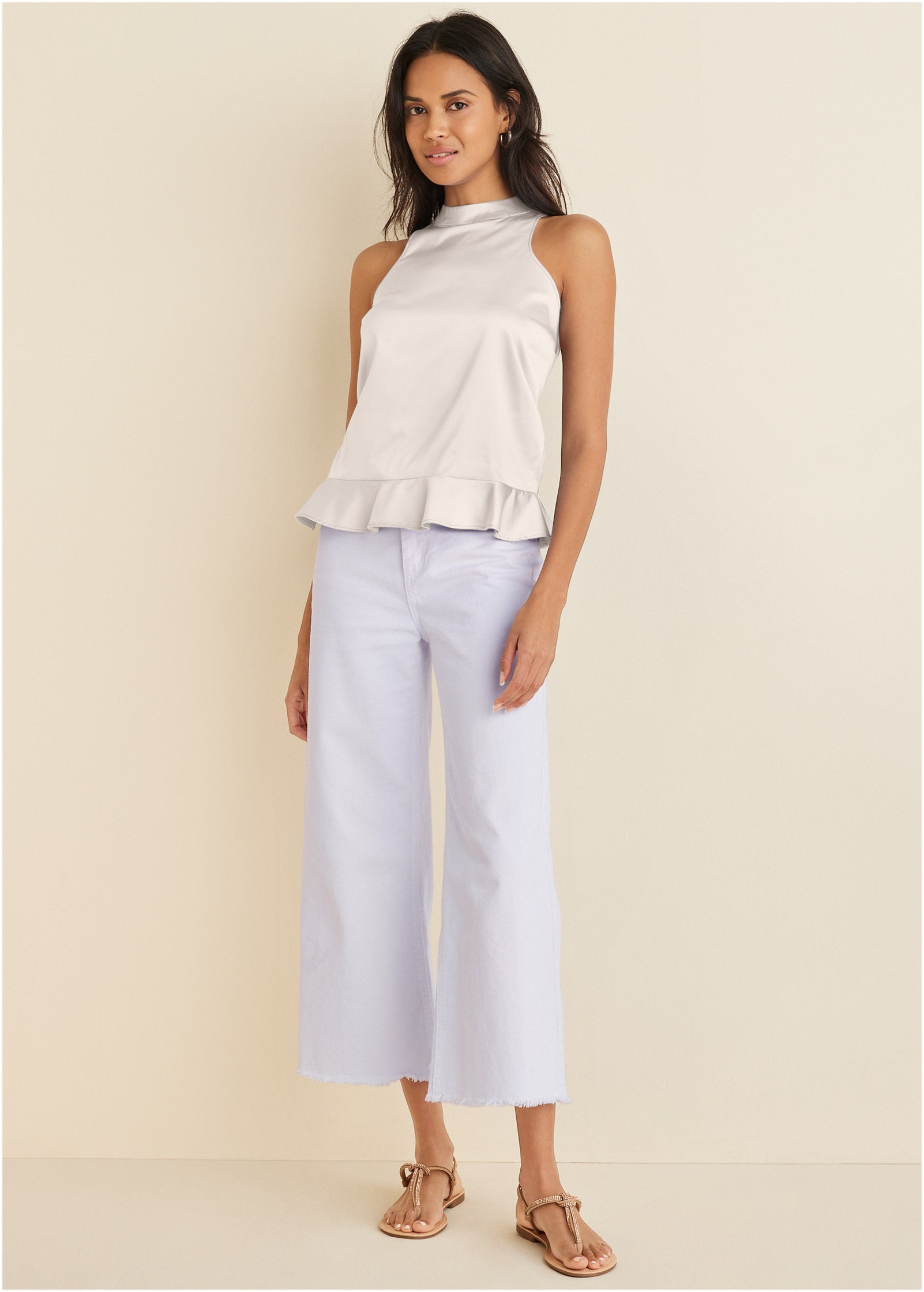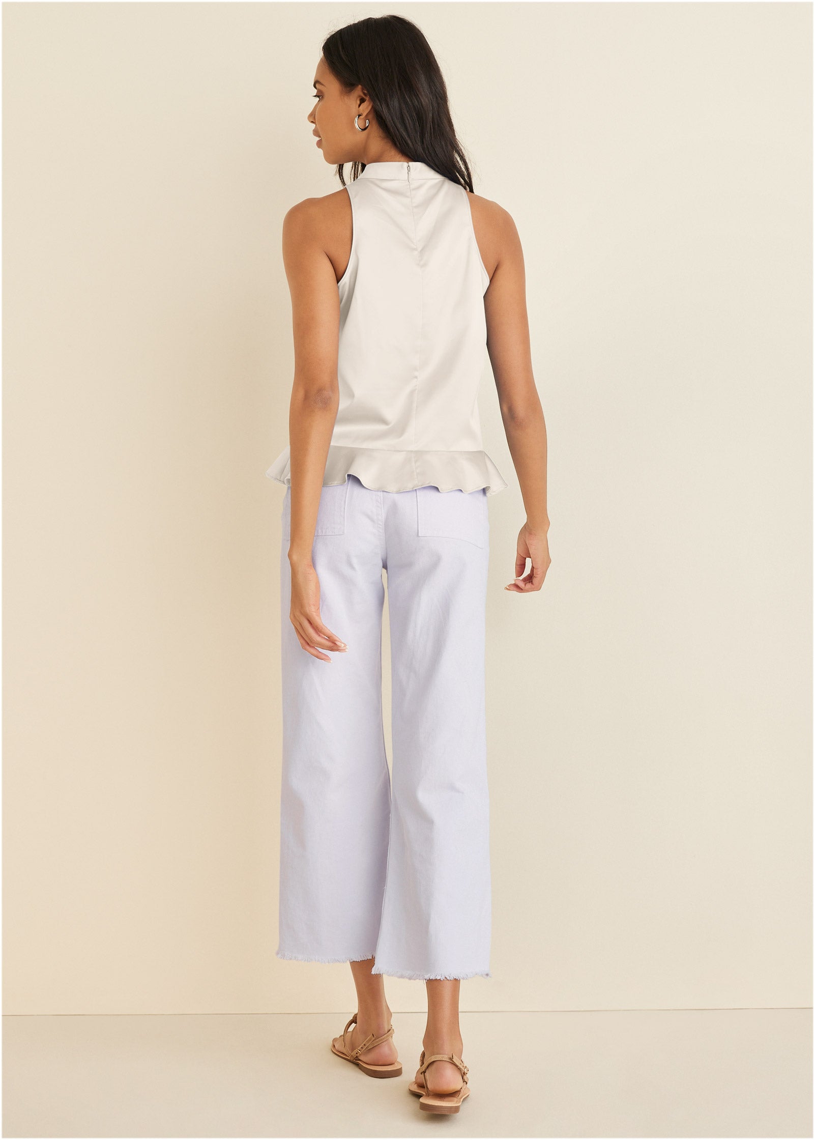 When the occasion calls for dressing up. but it's not quite a dress situation. make this elevated top your go-to. Done in our EffortLuxe fabric. it has a silky feel and subtle sheen with a hint of comfort stretch—which. BTW. means it doesn't wrinkle! The mock neckline and feminine peplum hem are elegant details that make this top feel special.* Sleeveless* Mock Neck* Peplum hem* Invisible back zipper closure* EffortLuxe (Poly/spandex. Imported)