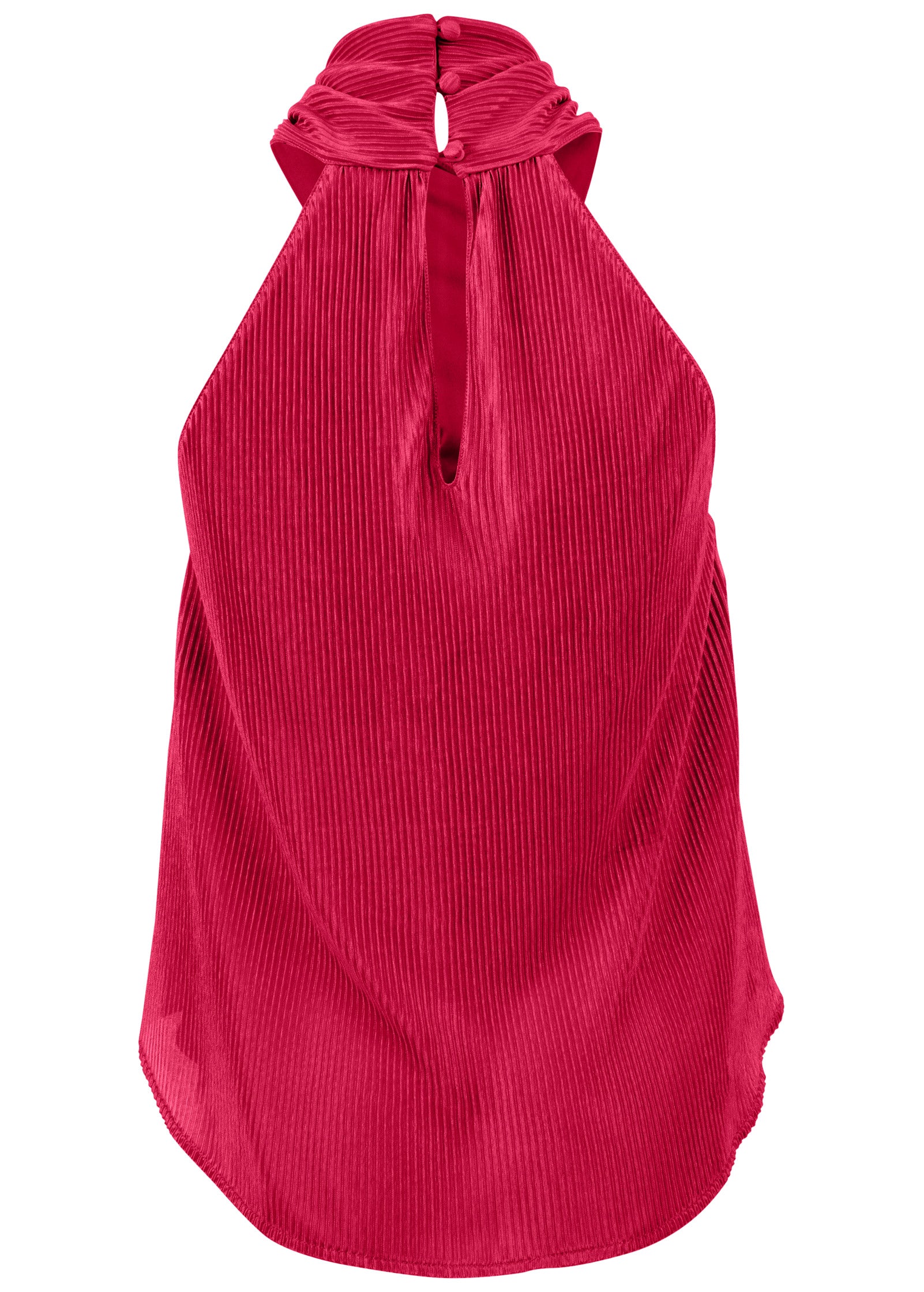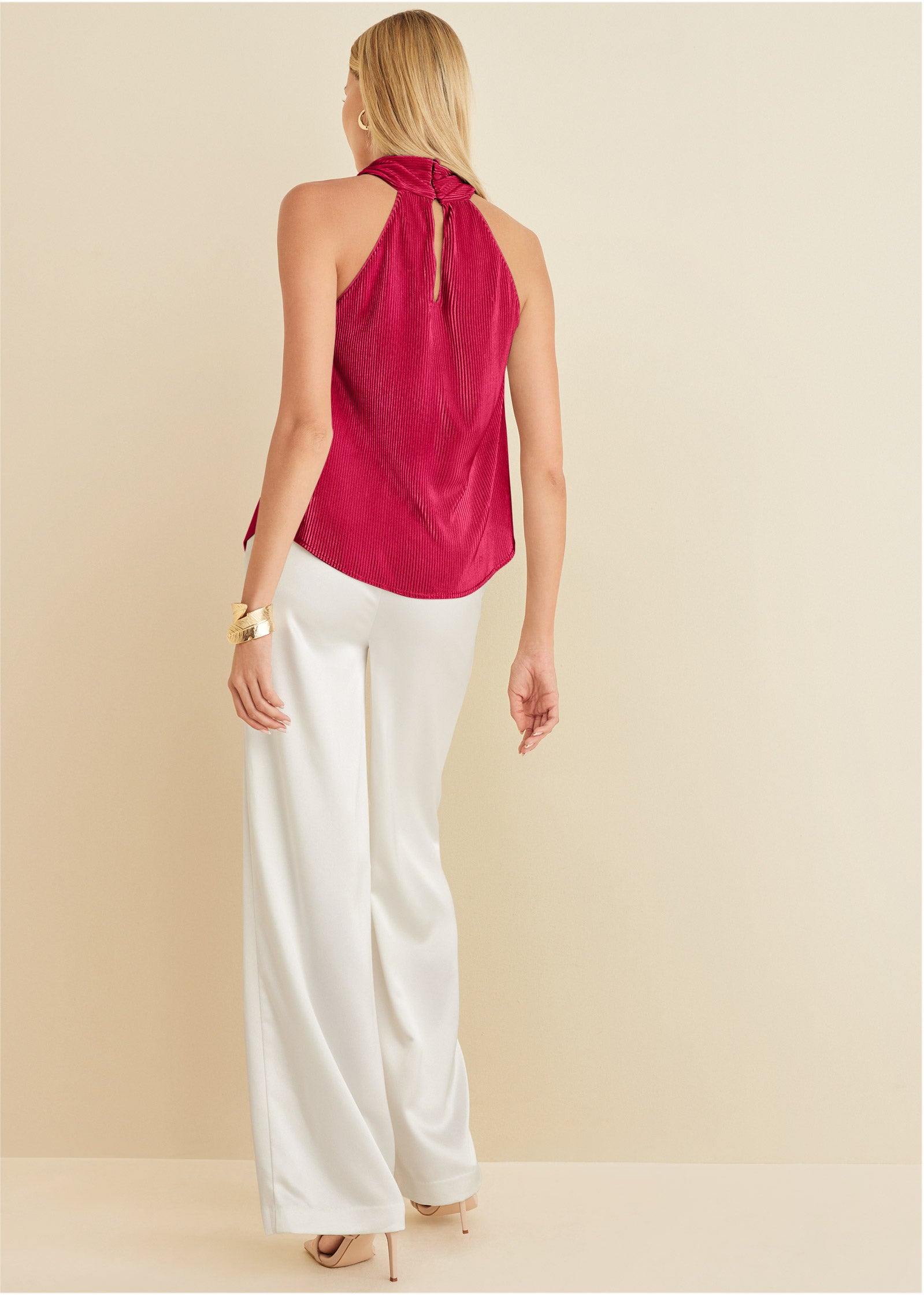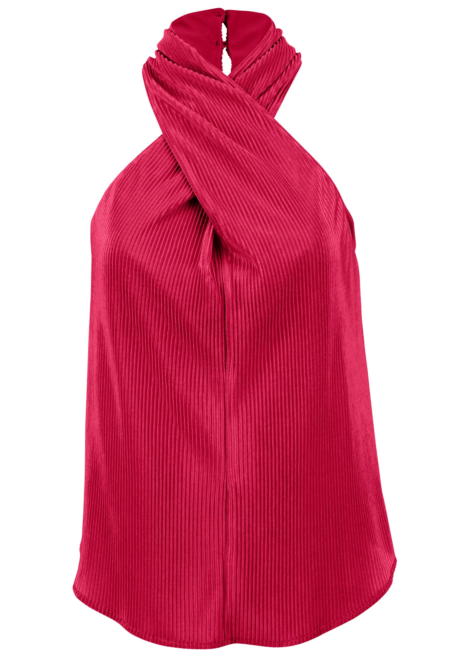 Show us a more elegant top. We dare you. This stunner has a cross neckline that twists right at the base of the neck in a dramatic fashion. putting your shoulders in the spotlight. Then there's the plissé fabric (A.K.A. crinkly micro pleats) that add eye-catching texture and amp up the fluid silhouette. Team this top with satin trousers for a look that's pure sophistication. * Sizes: XS (2). S (4-6). M (8-10). L (12-14). XL (16) * Button closure * Partially lined * Fabric has stretch * Polyester. Imported