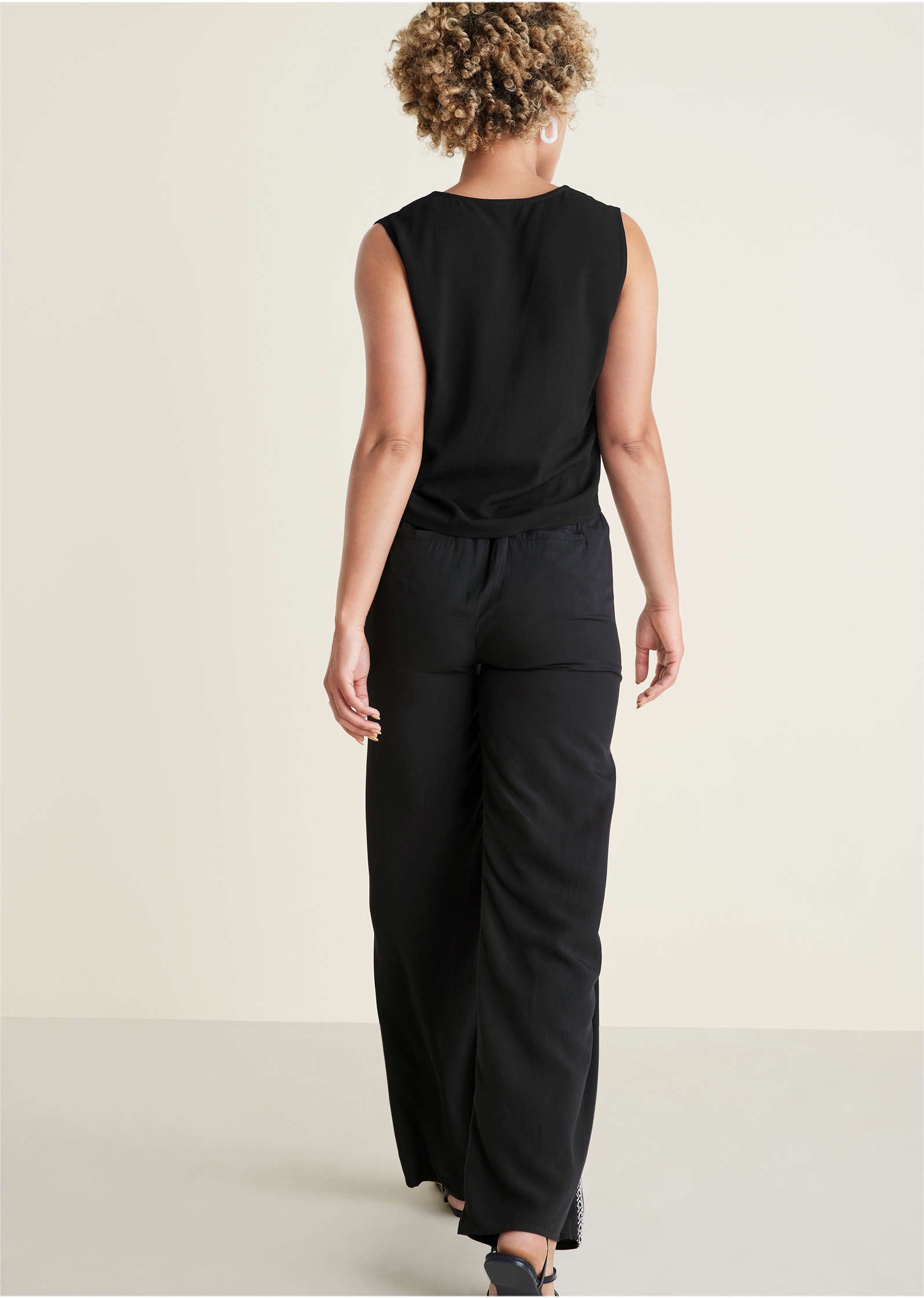 Black. white and bold all over. this tank has serious outfit-making power. Embroidered elements add textural interest. lending a unique artisan touch to the monochrome piece. Teamed with the relaxed fit. this top exudes a free-spirited. boho vibe.* Sizes: XS (2). S (4-6). M (8-10). L (12-14). XL (16)* Sleeveless* V-neckline* Viscose. Imported