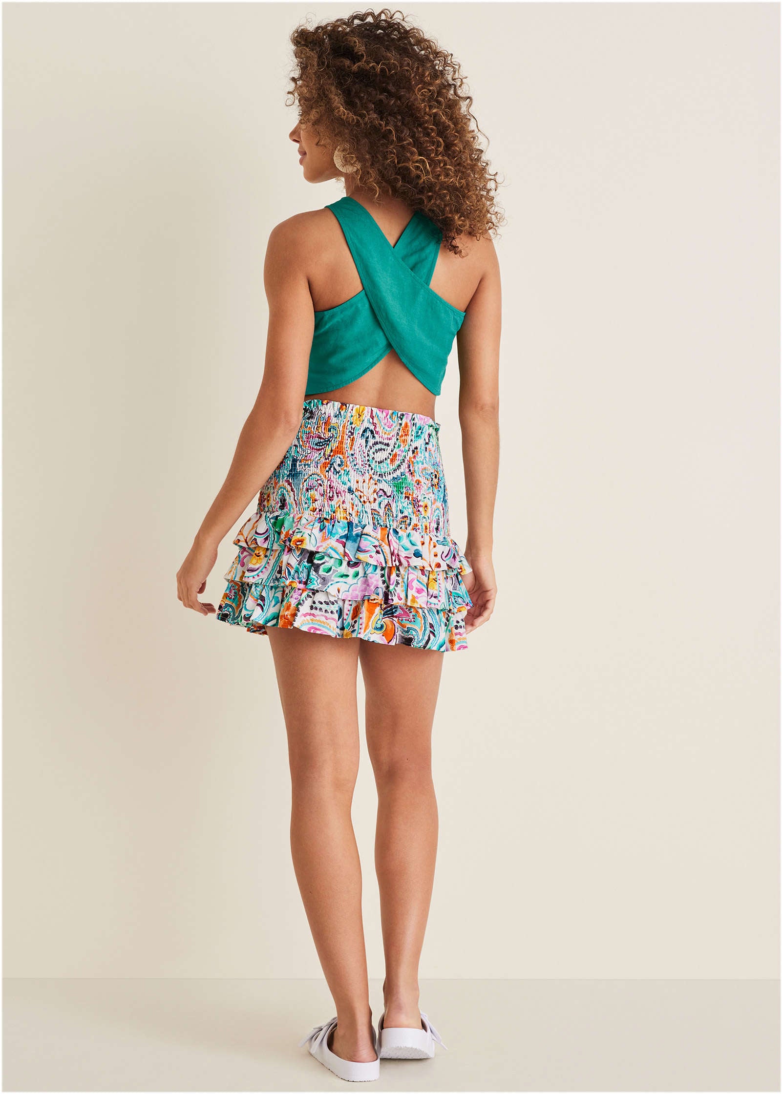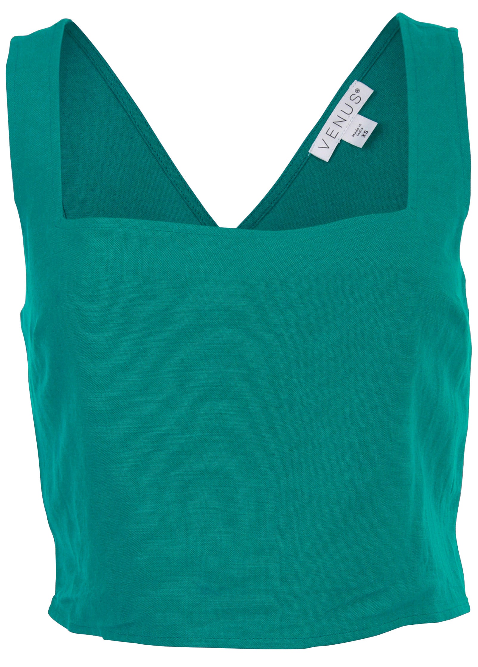 Easy. breezy. and anything but basic. This linen cross-back tank is your new warm-weather essential. with a sleek square neckline in the front and an open-back overlay for a little unexpected drama. Made from lightweight linen. it keeps you cool while serving major style. Pair it with linen pants or a flowy skirt for a classic summer-chic look that's equal parts effortless and bold.* Sizes: XS (2). S (4-6). M (8-10). L (12-14). XL (16)* LIGHT & AIRY LINEN: A breathable. lightweight fabric made for warm-weather days.* SLEEK SQUARE NECKLINE: A structured front balances the flowy. open-back design.* BOLD BACK DETAIL: A cross-back overlay adds a flirty. fashion-forward twist.* SUMMER-READY STYLE: Pair it with linen pants or a breezy skirt for an effortlessly chic look.* Viscose/cotton (CmiA)/linen. Imported