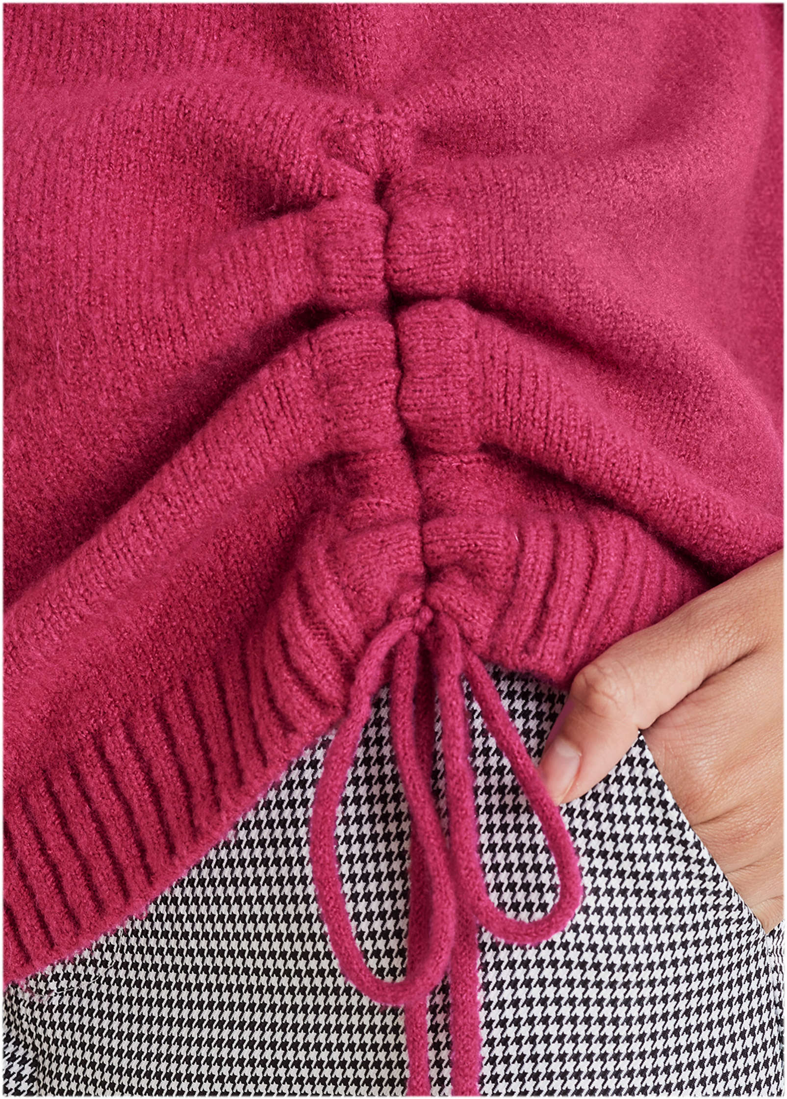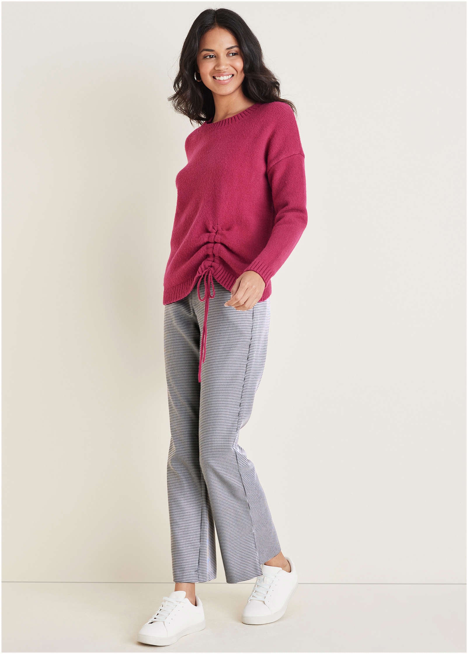 In a pinch? This cinched sweater is what you grab! Featuring adjustable ruching at the side. you can customize this crewneck style to suit your outfit. Its long sleeves and super-soft knit fabric is prepped to keep you cozy and your style on point all season long.* Sizes: XS (2). S (4-6). M (8-10). L (12-14). XL (16)* Crew neckline* Long sleeves* Ruched tie detail* Acrylic. Imported