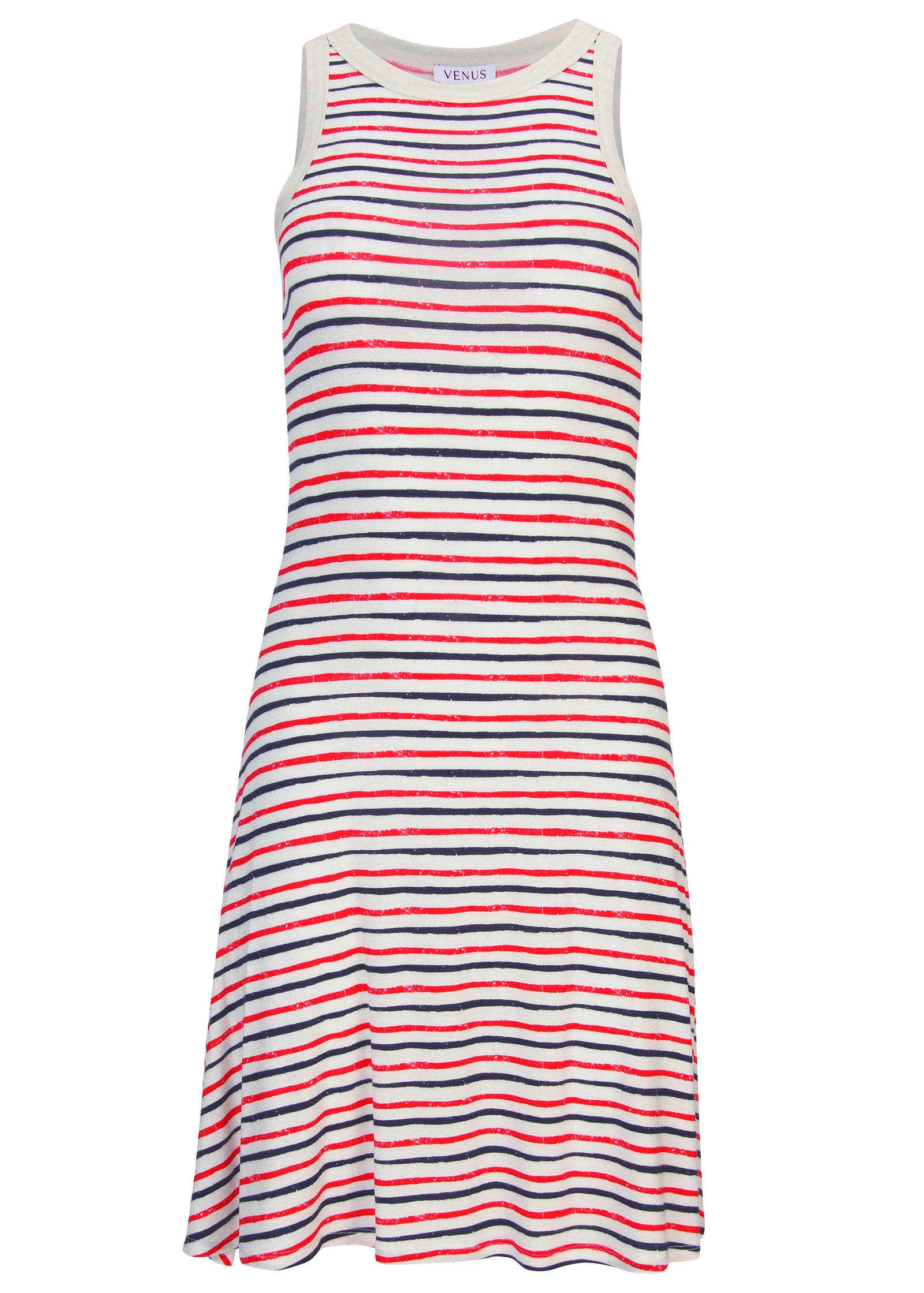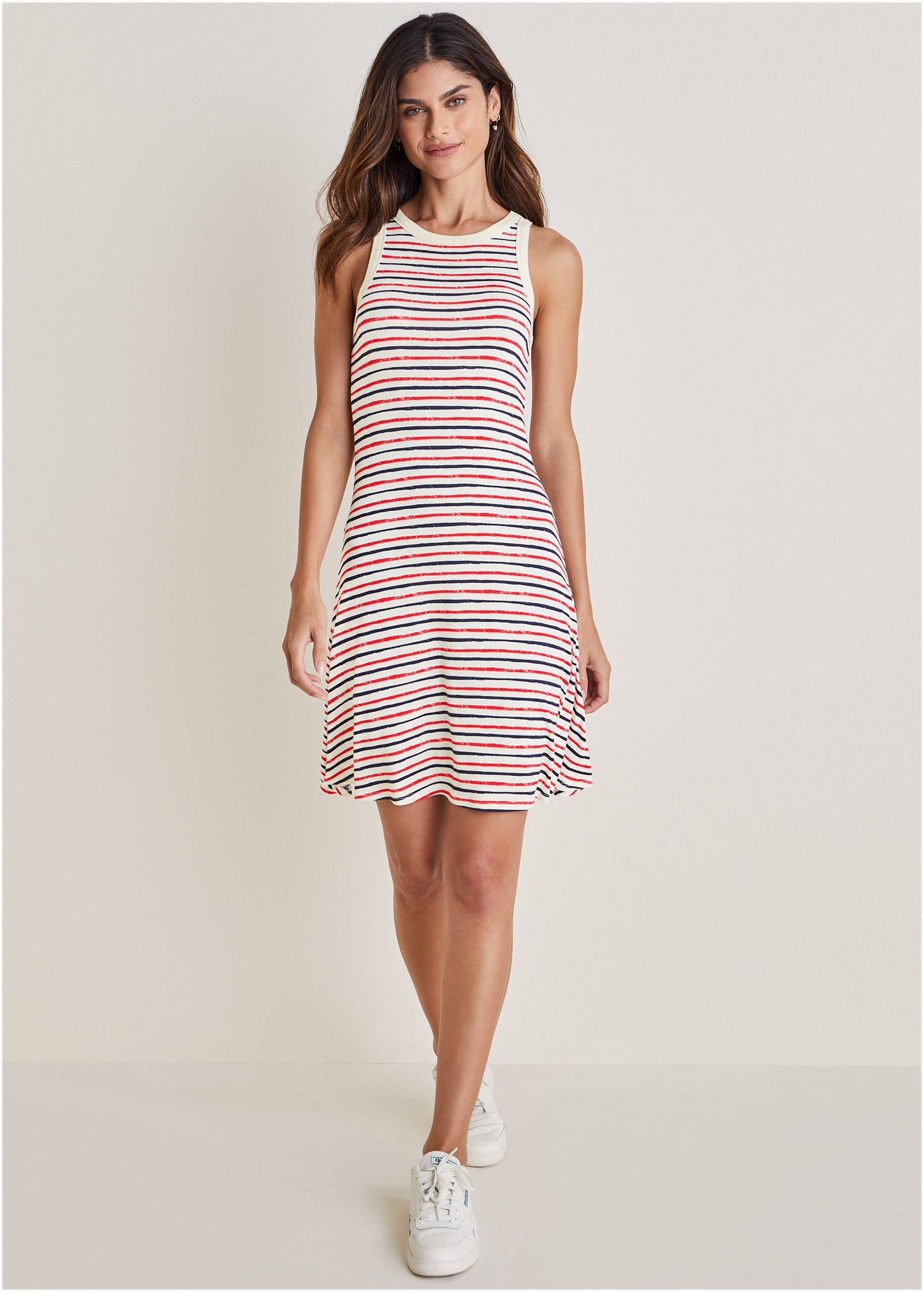 Printed Fit And Flare Dress - Tricolor Boardwalk Stripe