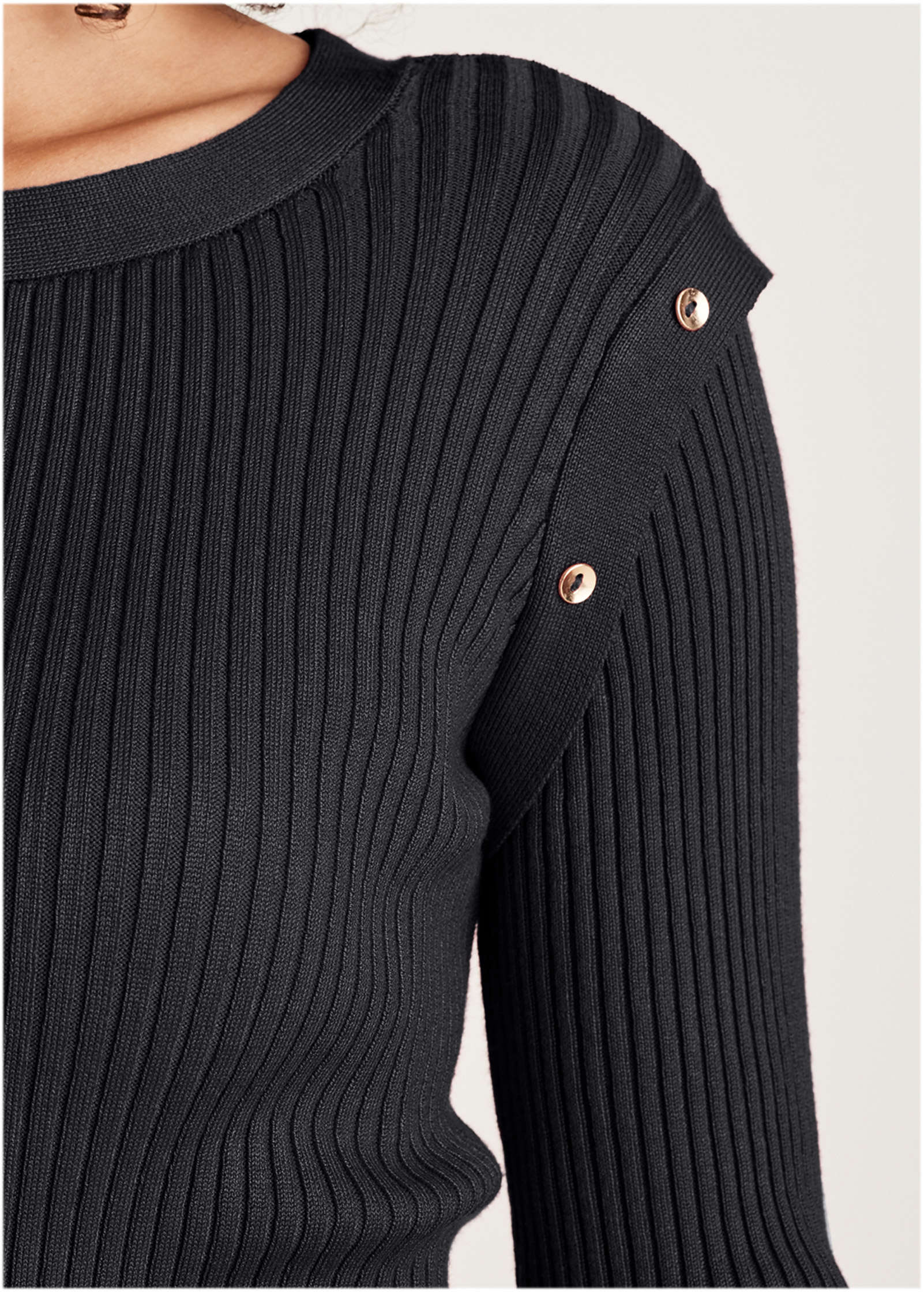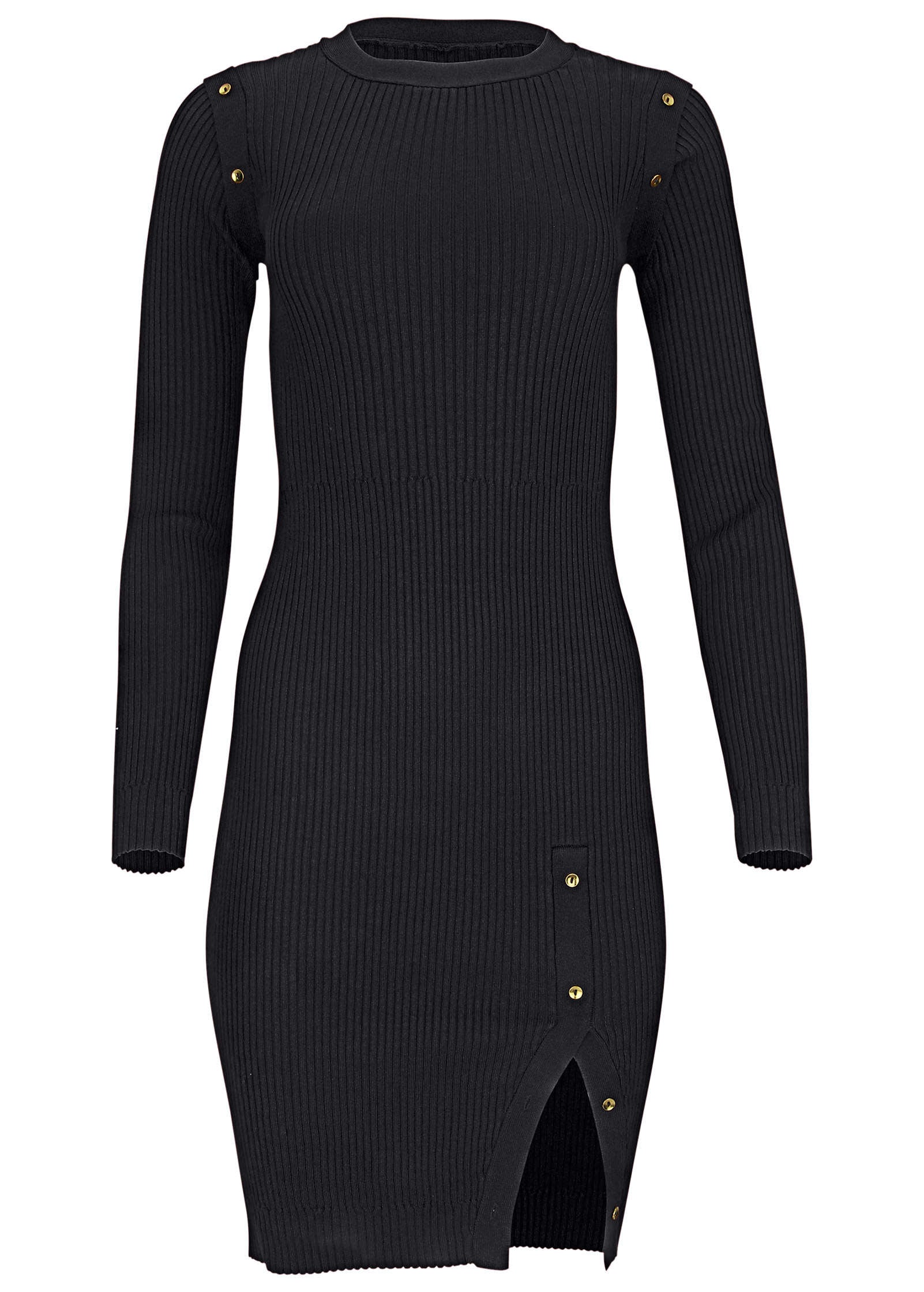 Button Detail Sweater Dress - Jet Black
