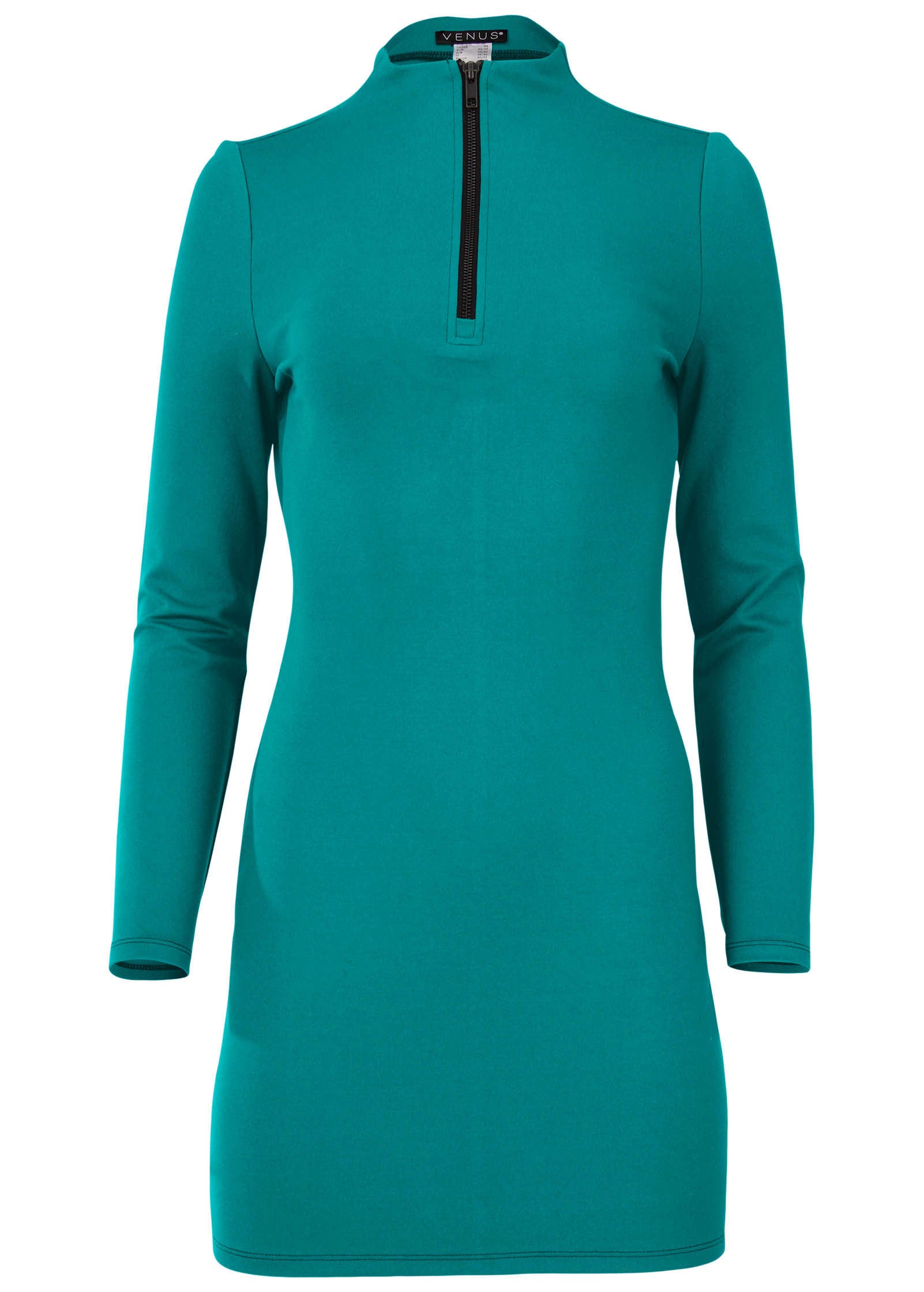 This modern mini dress has a sporty vibe with a mock neck and quarter-zip front. It's cut close to the body in an almost-A-line shape. skimming over your figure to create a clean silhouette. Done in our Ponte Perfect fabric. it looks refined. but feels relaxed thanks to low-key stretch that's ultra comfy and made to flatter.* Sizes: XS (2). S (4-6). M (8-10). L (12-14). XL (16)* Mini length. * Long sleeves* Mock neck* Quarter zip closure* Ponte Perfect (Rayon/nylon/spandex. Imported)