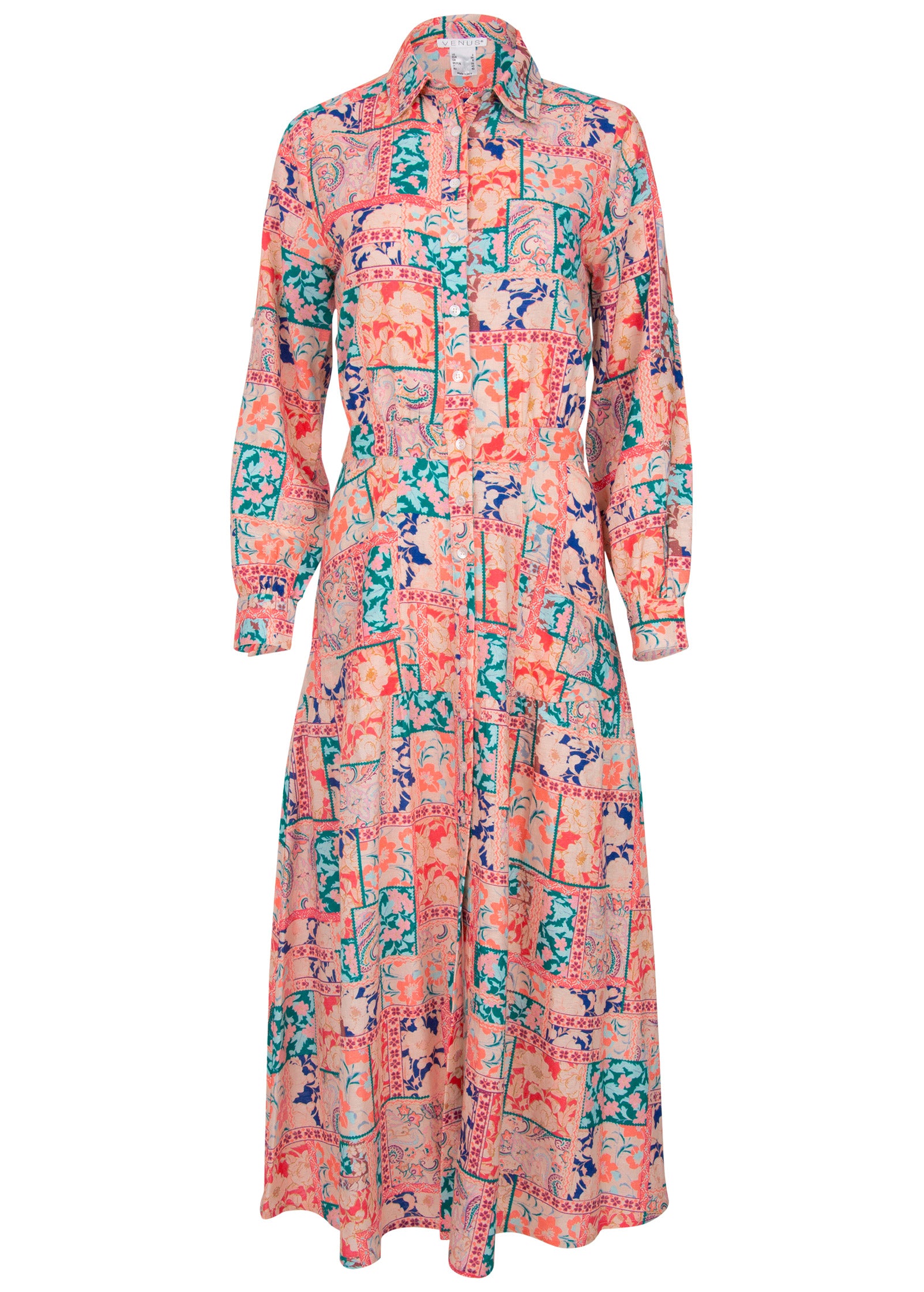 Technically this shirt dress is buttoned-up but it's not realllly buttoned up so to speak. First of all. it's made in our AirLight Linen that's lightweight. breathable and has a relaxed vibe that says "vacay is just a state of mind". Then there's the tiered skirt that gives it a fun. twirly shape. Wear this one with sandals on the weekend or with heels to dress it up—you've got options.* For printed styles. print placement may vary* Collared neckline* Button closure* Long sleeves* Midi length approx. 52"* Unlined* AirLight Linen (Viscose/cotton: cmiA/linen. Imported)