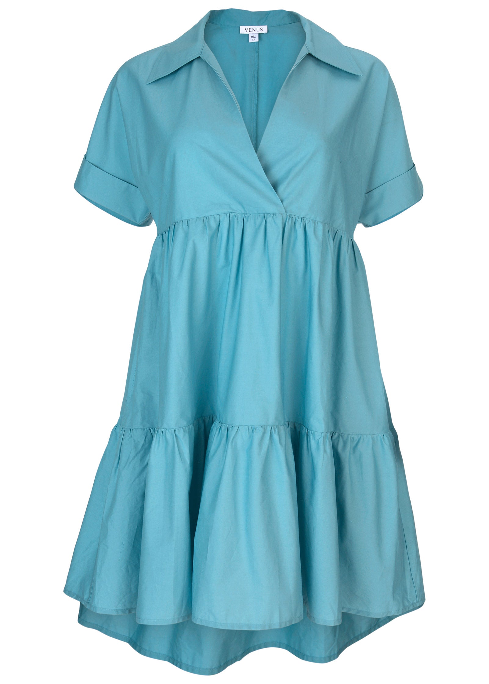 Cotton Poplin Tiered Dress - Blue