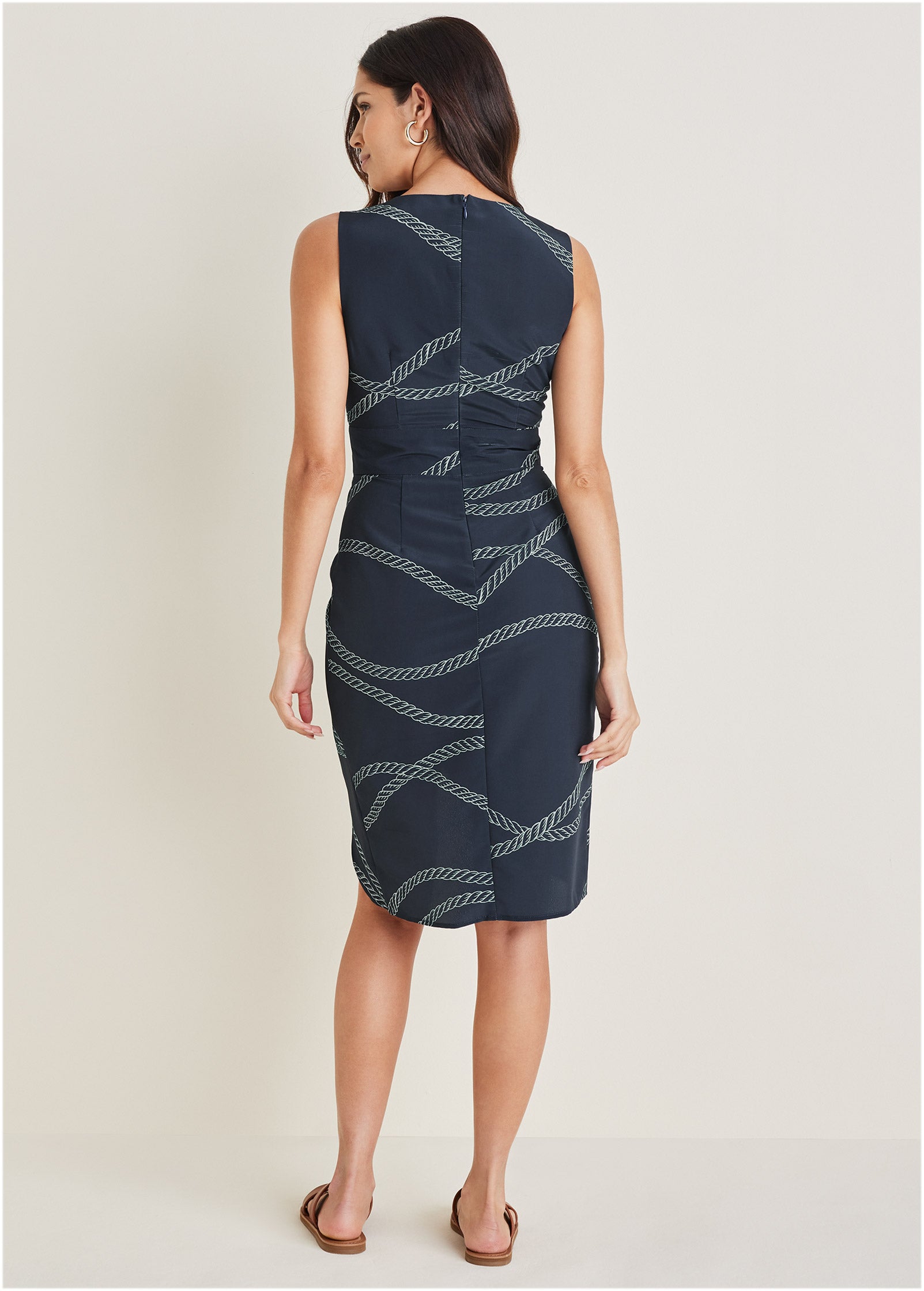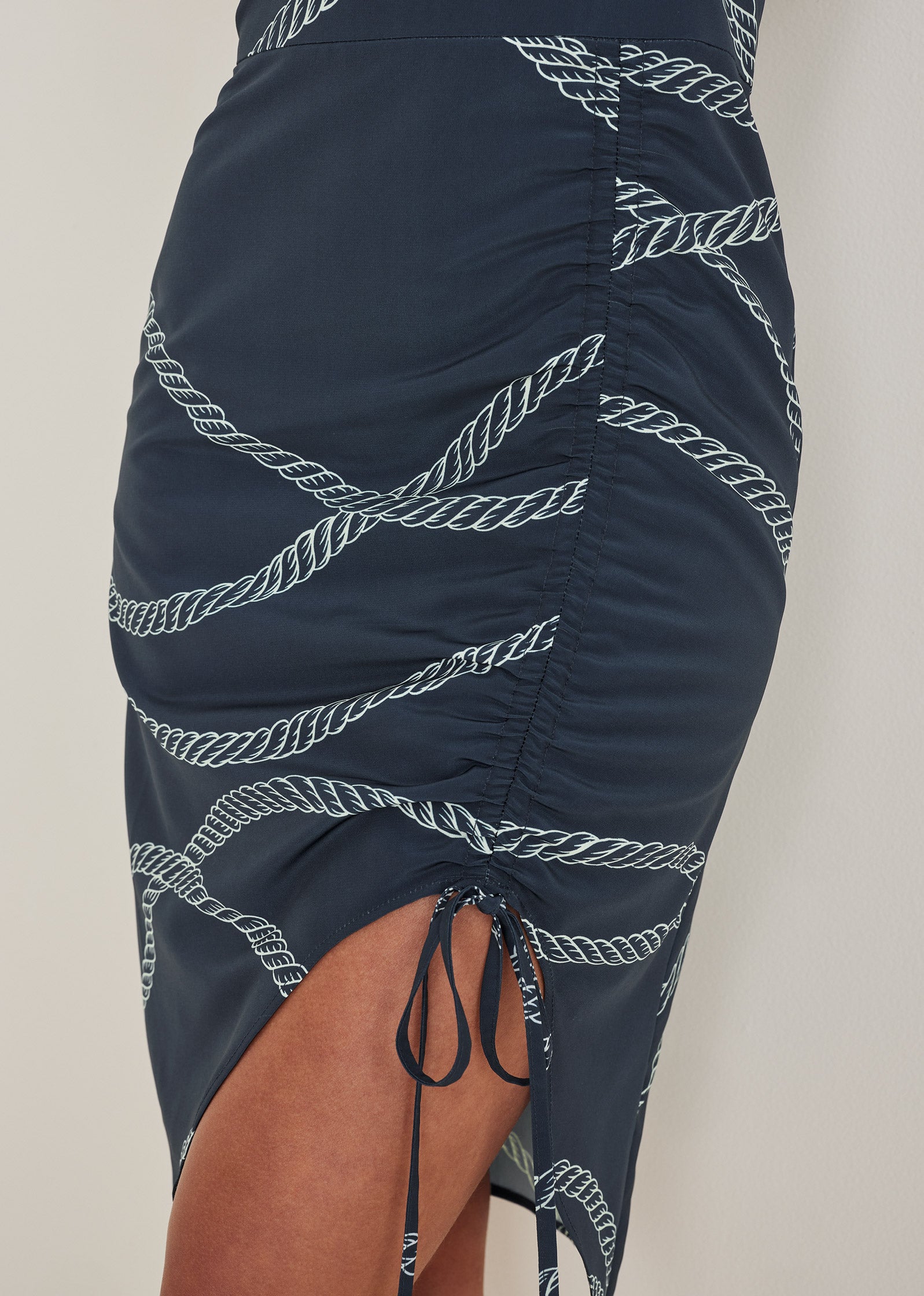 Ruched Side High Low Dress - Yacht Rope Print