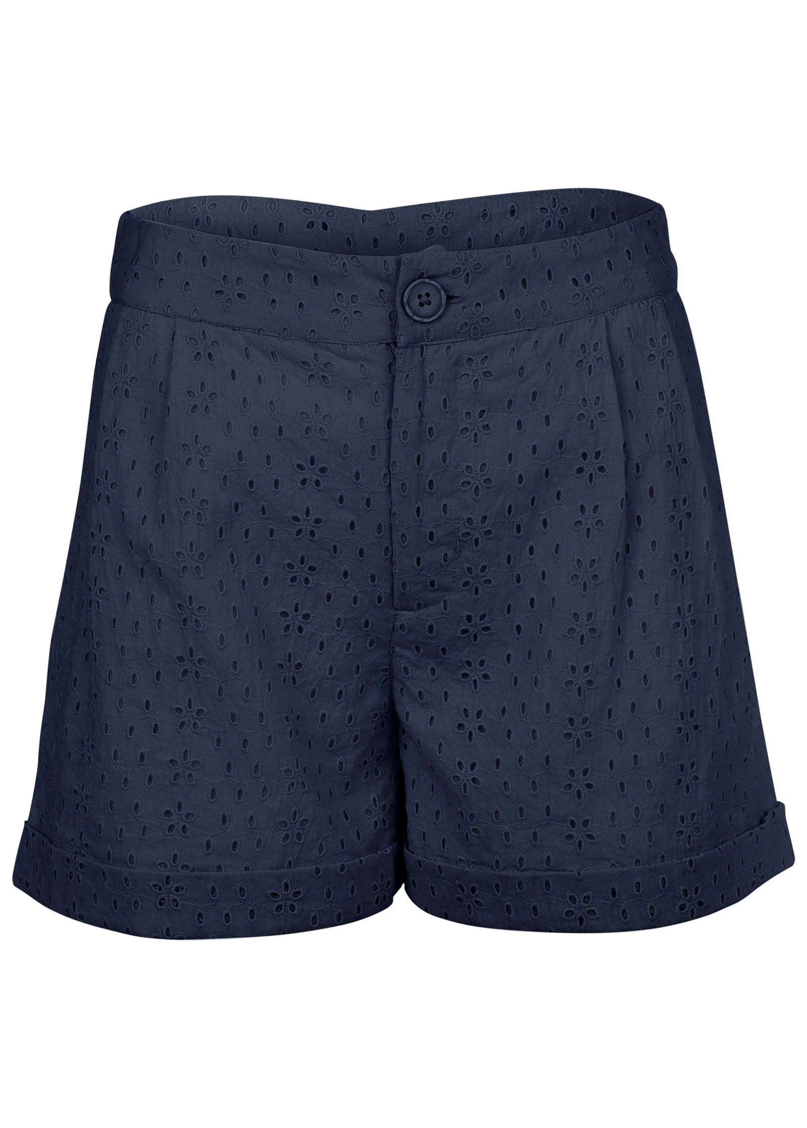 Eyelet Cuffed Button Shorts - Navy