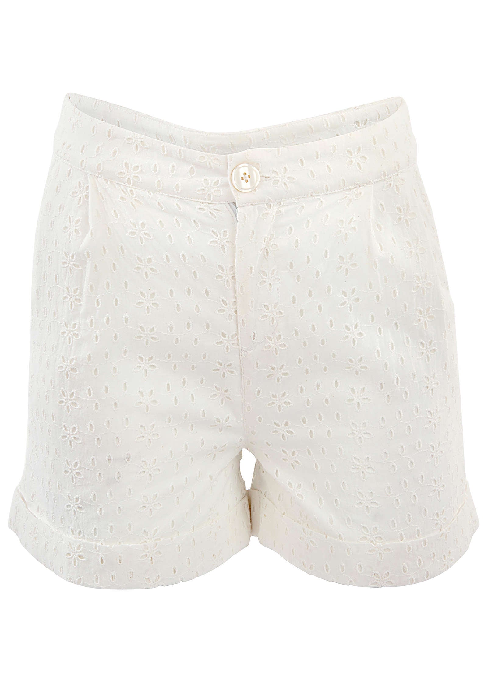 Fresh and feminine eyelet makes this pair the shorts equivalent of a breezy sundress. Cuffed hems add a polished spin that looks put-together no matter how you style them. Make it a set with our matching Eyelet Maxi Top or team with a relaxed knit and sneakers for an effortless weekend look.* High waisted* Button and zipper closure* Cuffed hem* Cotton. Imported