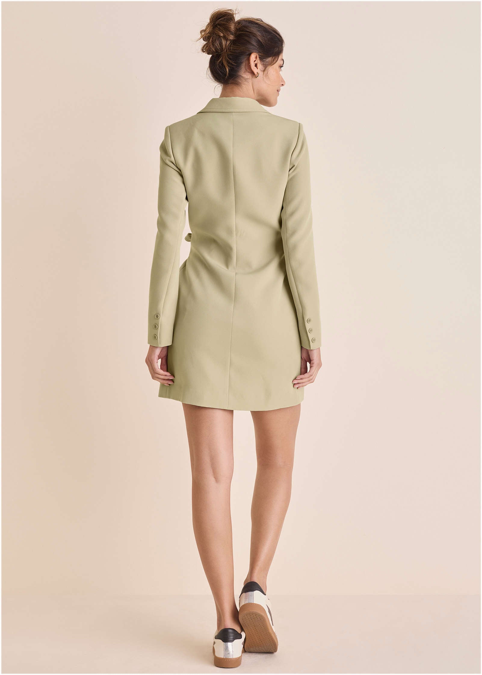 Work or weekend? When a dress is this eye-catching. wear it anywhere and everywhere! This Belted Blazer Mini takes classic tailoring and gives it a bold. feminine twist. The collared neckline and wrap style create a sleek silhouette. while the tie waist cinches for a figure-flattering fit. Long sleeves keep it polished. making it the perfect go-to for boss babe moments at work or cocktails after hours.* Sizes: XS (2). S (4-6). M (8-10). L (12-14). XL (16)* Collared neckline: Sleek and sophisticated with a structured touch.* Long sleeves: Perfect for balancing coverage with style.* Tie waist: Defines your shape for a confident. cinched look.* Wrap style: Flattering. effortless. and easy to wear.* Versatile styling: Take it from meetings to martinis—just add heels!* Poly/elastane. Imported