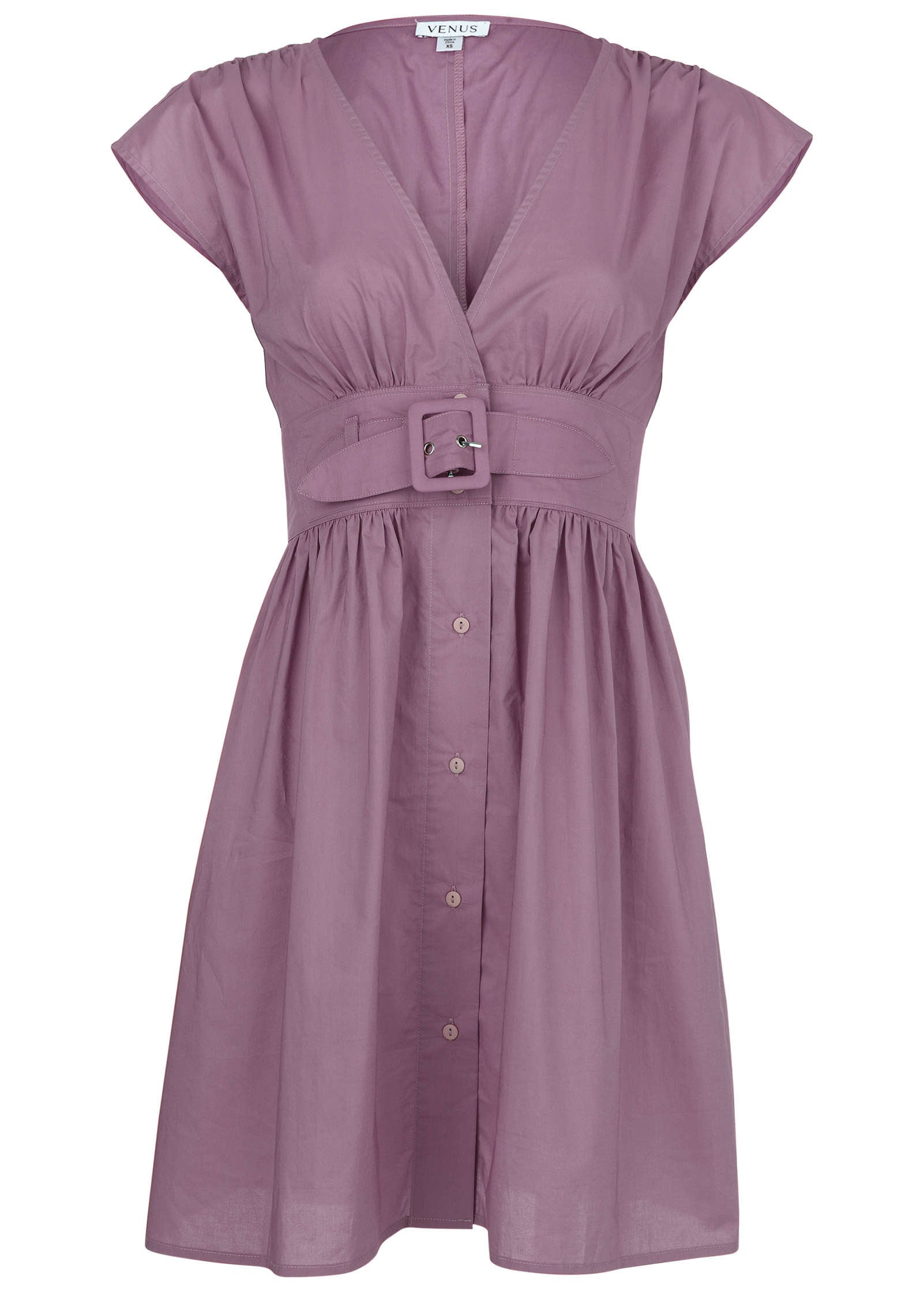 Effortlessly chic and perfect for warmer days. this belted poplin mini dress offers a flattering fit and breezy comfort. The V-neckline and short sleeves keep it light and breathable. while the belted waist accentuates your shape. Button details and the flowy poplin fabric make it an easy choice for a laid-back yet stylish look.* Sizes: XS (2). S (4-6). M (8-10). L (12-14). XL (16)* V-neckline: Flattering and feminine.* Short sleeves: Perfect for sunny days.* Button closure: Adds a touch of classic charm.* Belted detail: Cinches the waist for a flattering silhouette.* Breezy poplin: Light. breathable. and perfect for warm weather.* Cotton. Imported