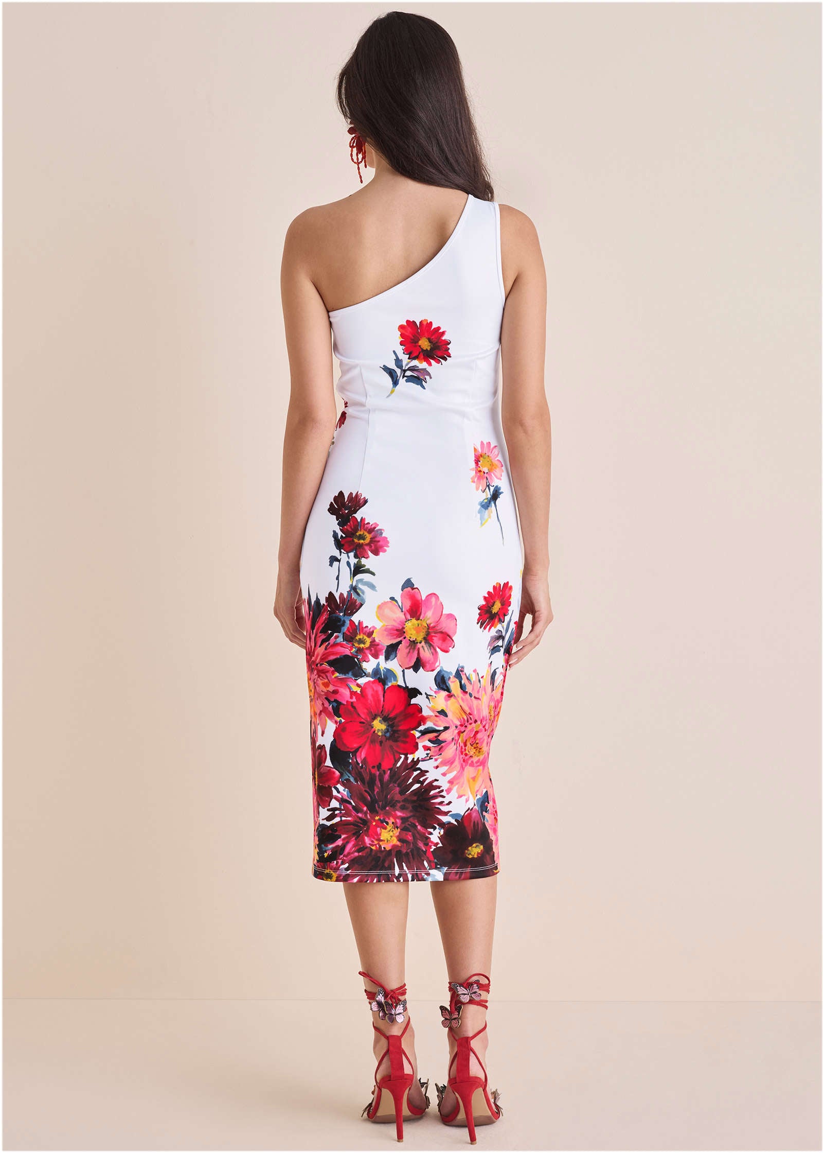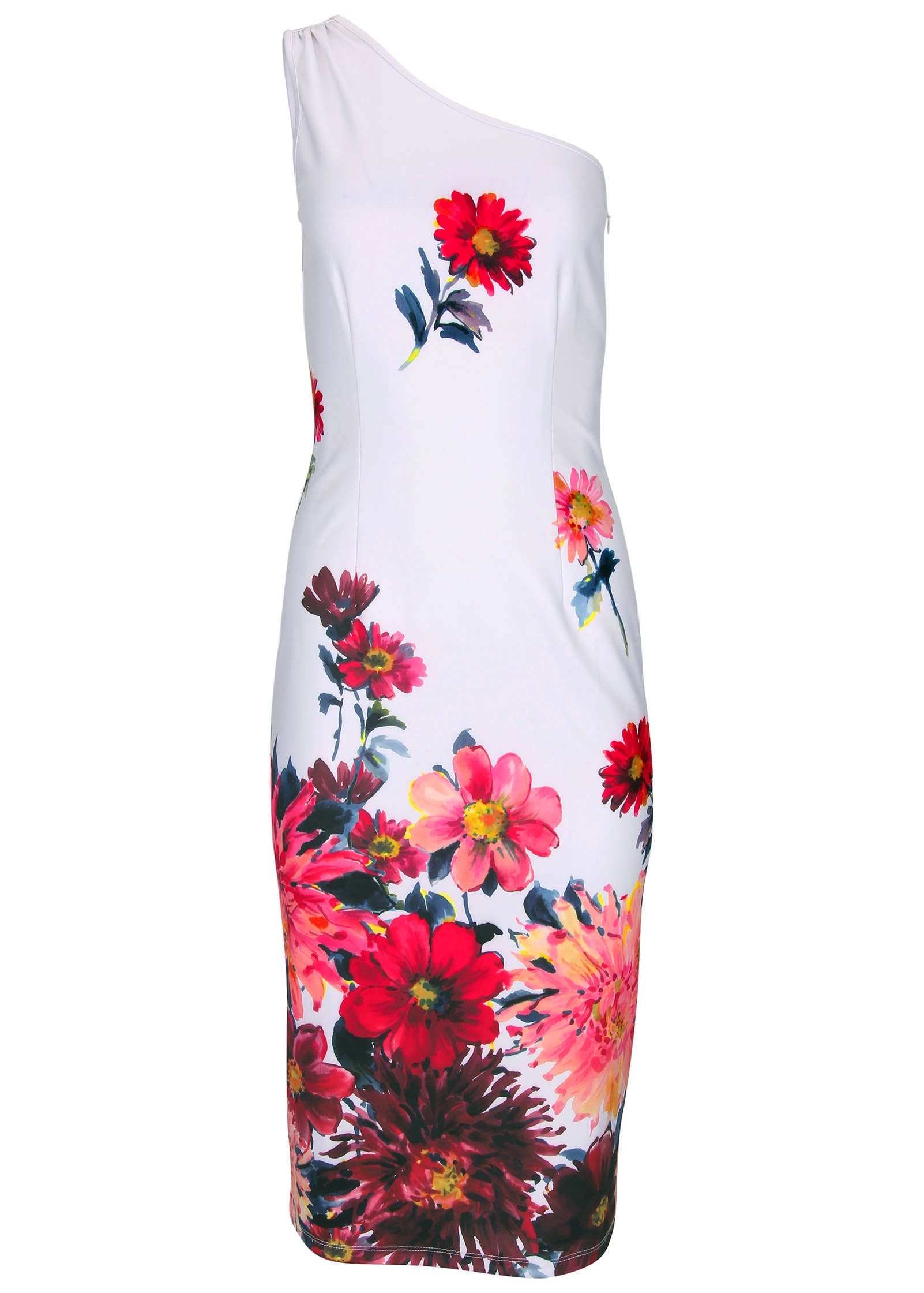 In this curve-hugging one-shoulder scuba dress. you'll feel as good as you look. The bodycon fit hugs your curves in all the right places. while the scuba fabric provides a smooth. flattering silhouette. Whether you're attending a cocktail party or a spring evening event. this dress is the perfect mix of bold and elegant.* Sizes: XS (2). S (4-6). M (8-10). L (12-14). XL (16)* For printed items. print placement may vary. * One-shoulder neckline: A chic and modern design that shows off your shoulders.* Invisible side zipper: Seamless finish for a sleek look.* Bodycon fit: Hugs your curves for a flattering. feminine silhouette.* Scuba fabric: Provides structure and comfort. perfect for all-day wear.* Poly/spandex. Imported