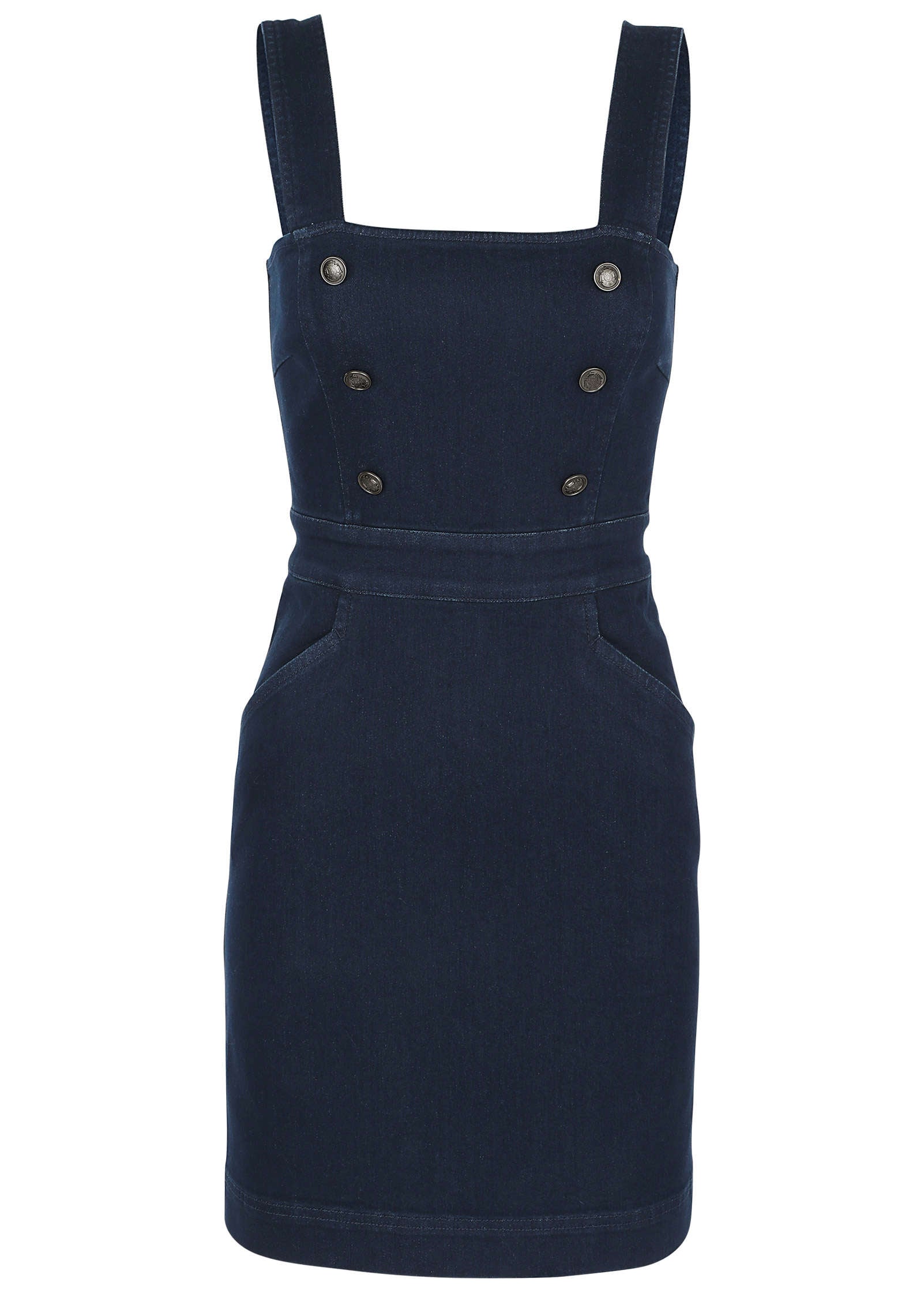 The Denim Button Mini Dress is a must-have for casual days that call for a little extra. With a chic square neckline. sleeveless cut. statement button detail. and an exposed back zipper. this mini shows off just the right amount. Pair it with boots or heels and you're good to go!* Sizes: XS (2). S (4-6). M (8-10). L (12-14). XL (16)* Square neckline: Modern and flattering* Sleeveless: Perfect for layering* Button detail: Adds extra charm* Exposed back zipper: Easy on and off* Cotton (CmiA)/poly/elastane. Imported.
