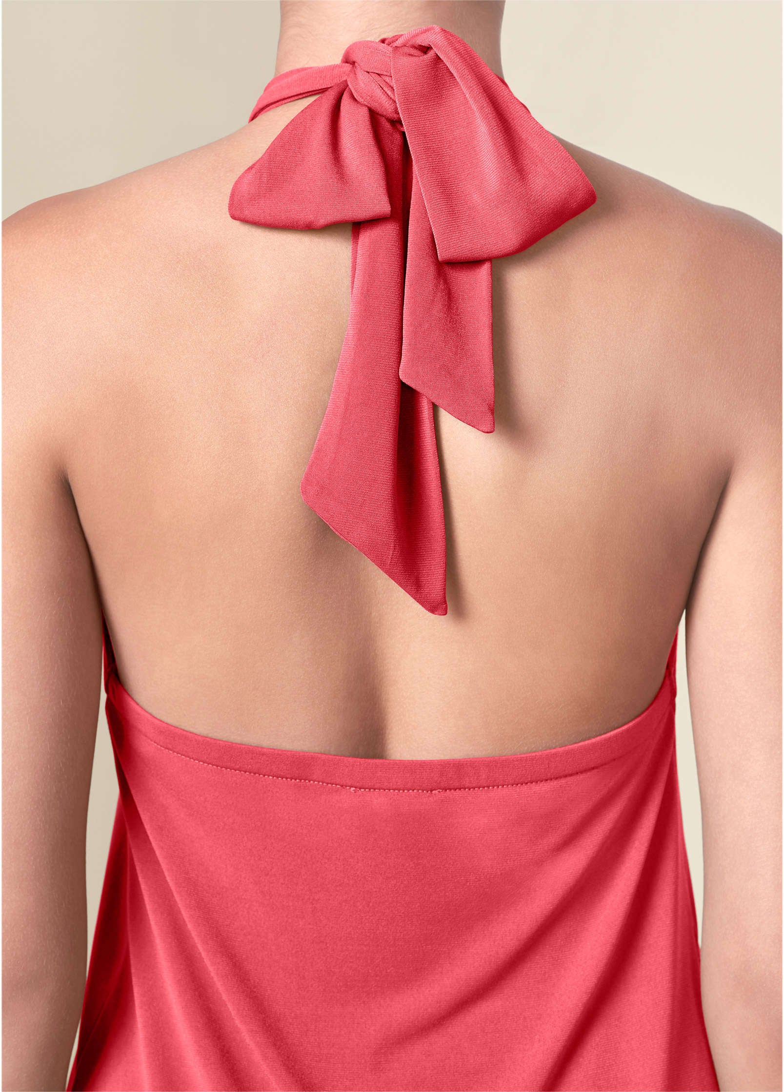 You're looking at the quintessential sunny-day dress. The twisted halter neckline is perfect for showing off sunkissed shoulders and also draws attention to the small keyhole detail underneath. This swingy mini dress has an effortless drape and easy. breezy silhouette that makes it a warm-weather must. * Sizes: XS (2). S (4-6). M (8-10). L (12-14). XL (16) * 31" approx. length; varies by size * Fabric has stretch * Unlined * Sleeveless * No closure * A-line * Recycled poly/elastane. Imported.