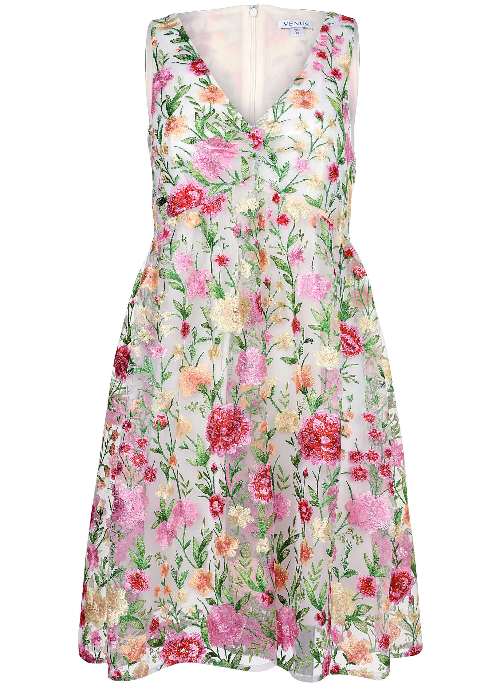 This embroirdered babydoll mini dress is so pretty. it'll make the entire garden jealous. The V-neckline and sleeveless design make it perfect for warm spring days. while the ruched front creates a flattering shape. The all-over embroidered flowers add a whimsical touch. and the lined design ensures comfort all day long. Whether you're attending a garden party or brunch with friends. this dress will have you feeling effortlessly chic.* Sizes: XS (2). S (4-6). M (8-10). L (12-14). XL (16)* V-neckline: Flattering and fresh for spring.* Sleeveless: Keeps you cool and breezy.* Ruched front: Adds texture and definition to your silhouette.* All-over embroidered flowers: A delicate. feminine touch for a charming look.* Lined: Comfortable for all-day wear.* Poly. Imported