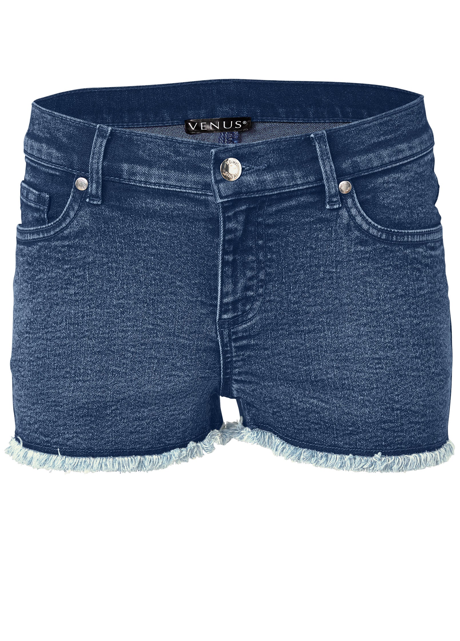 Cutoff jean shorts are a warm-weather staple. and this pair is no exception! The effortless frayed hem has a laid-back feel that balances out the short 2" inseam. For casual sunny days or tossed over your swim look. these denim shorts are destined to become favorites.* Available in plus size* Low rise* Button and zipper closure* Frayed hem* 2" inseam* Inseam on plus sizes may vary (1-1.25" longer"* Cotton/elastane. Imported